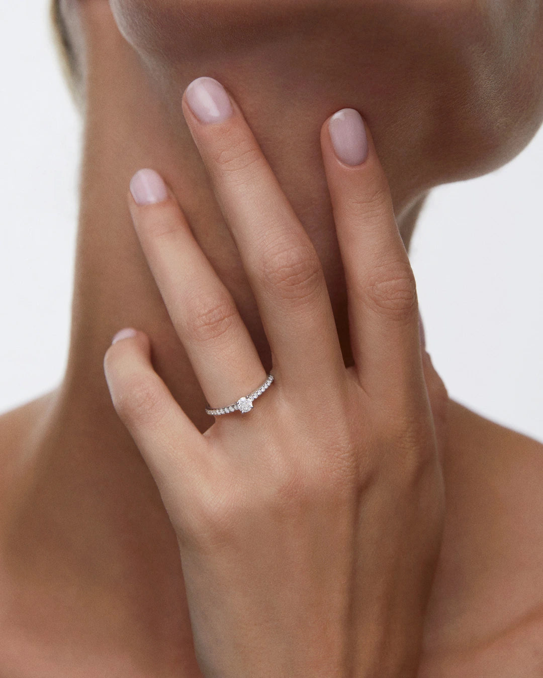 Solitario Odette de diamantes elaborado en oro blanco de 18 Kt. Inspirado en el impresionante juego de luces y sombras del famoso ballet El lago de los cisnes, el diseño de nuestro exclusivo solitario Odette busca ensalzar al máximo la luz que reflejan sus exquisitos diamantes. Sencillo y elegante, destaca por los deslumbrantes destellos del solitario central de 0,20 quilates, intensificados gracias al delicado pavé de diamantes que recorre su brazo generando un espectáculo de brillo inigualable. Esta poética joya es la elección más acertada para una declaración de amor que quedará grabada para siempre en nuestra mente, un símbolo duradero con el que dará comienzo una preciosa nueva etapa como pareja. Da el 'sí, quiero' más sofisticado de la mano de Mumit. El solitario Odette está disponible en una versión adicional de 0,50 quilates.