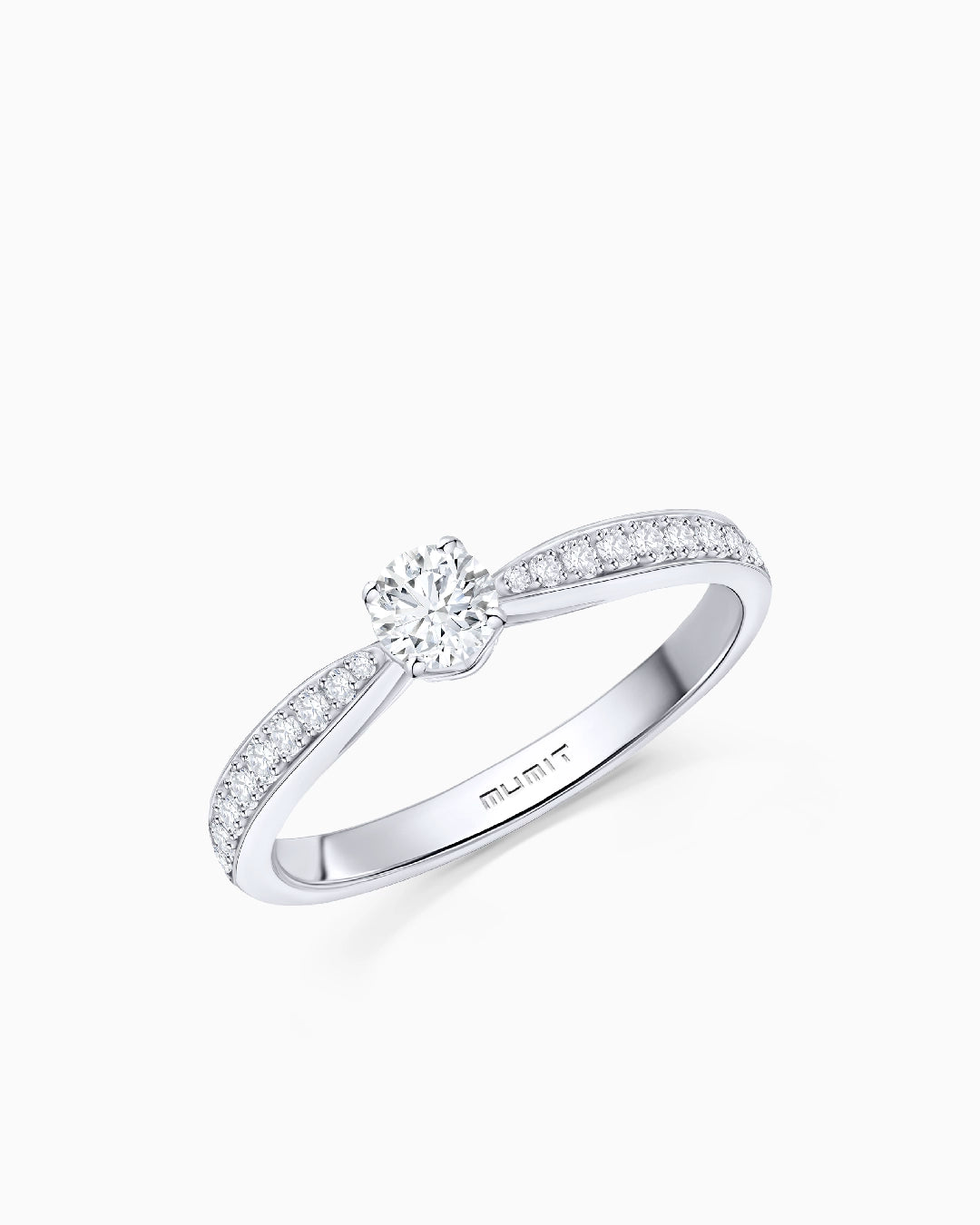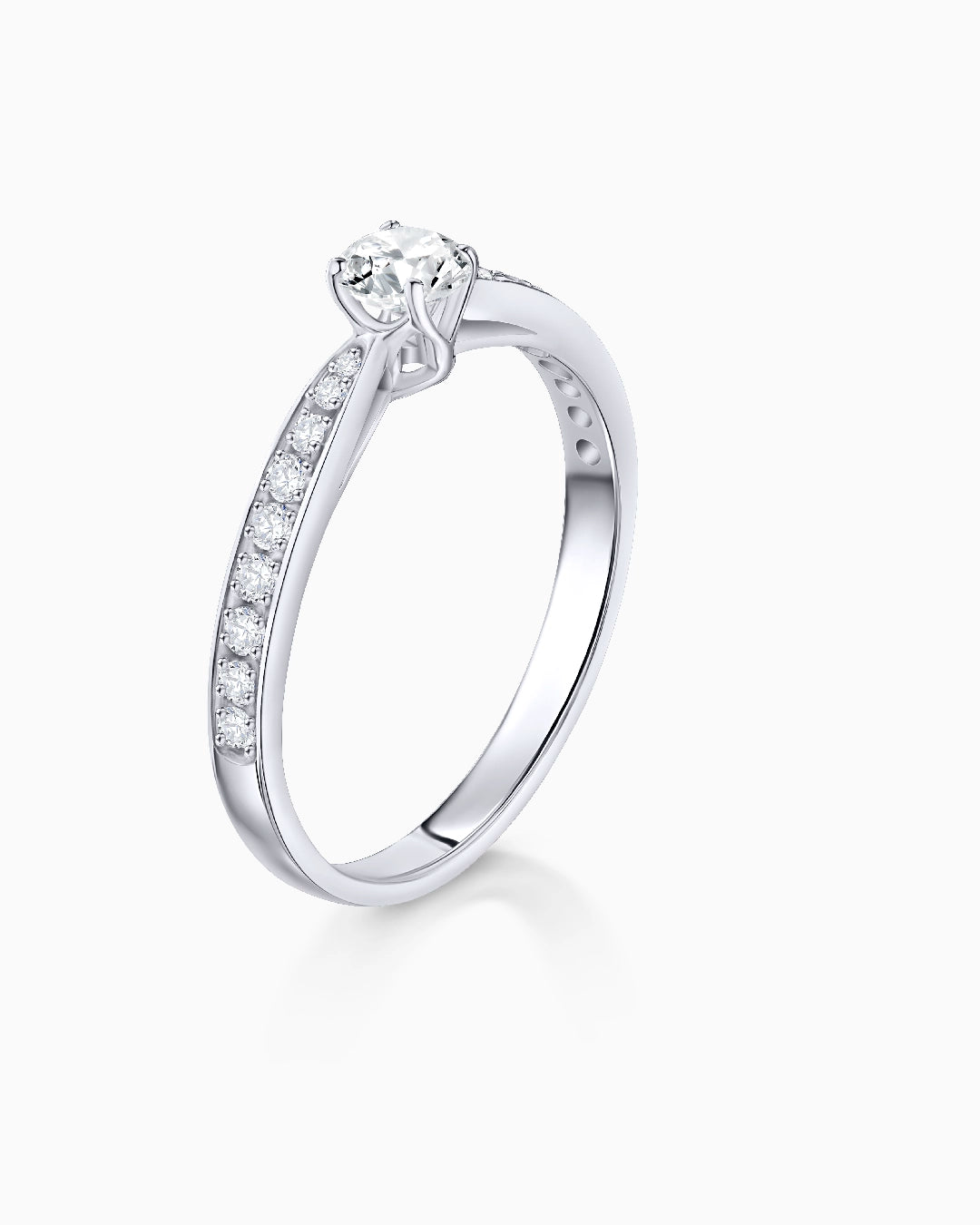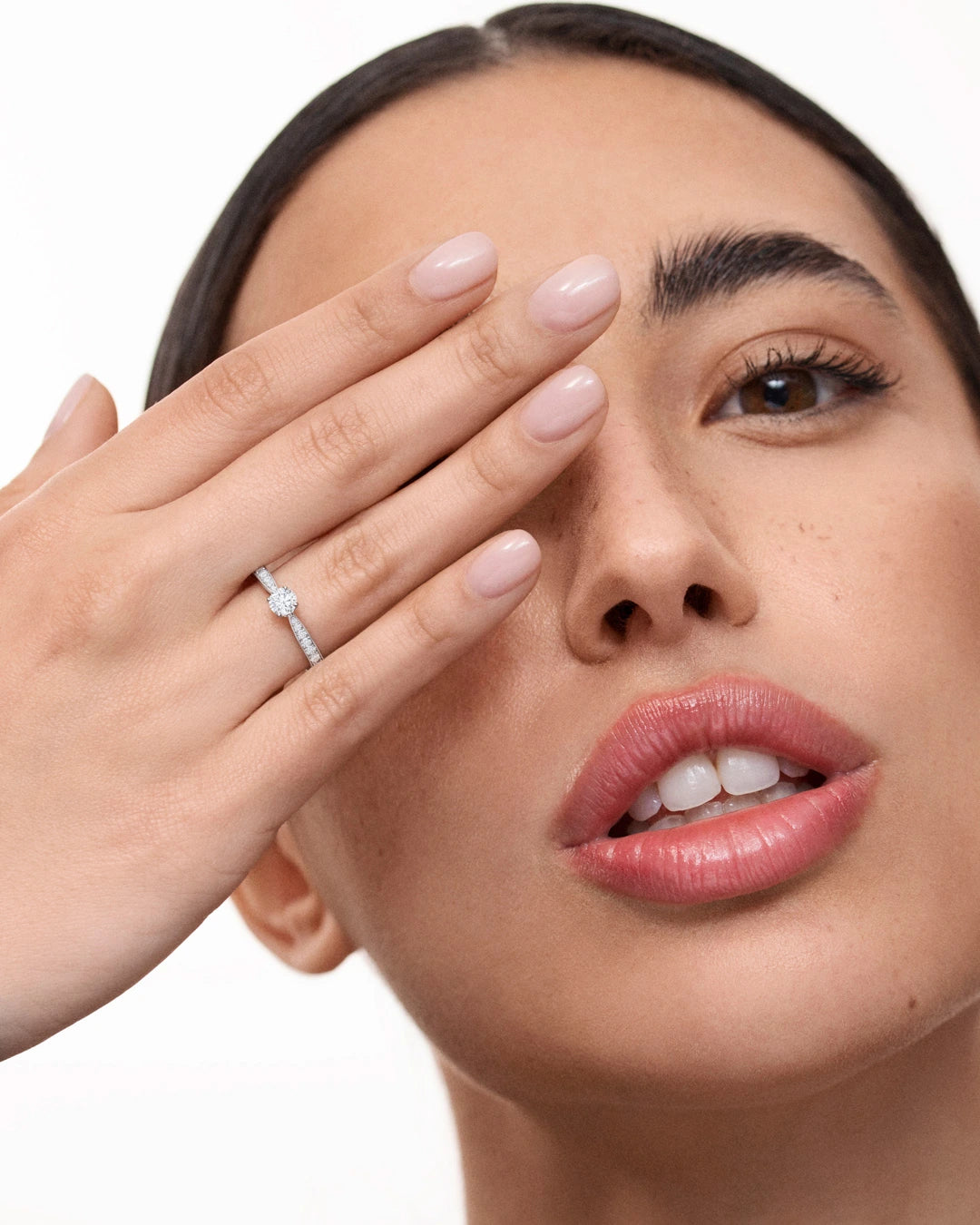 El amor es el sentimiento más fuerte que existe y a la vez tan delicado como los destellos de un diamante. El solitario Always es la forma de decir “siempre” más innovadora y actual. Su robusta montura se afina hacia la parte central, aportando el máximo protagonismo a un espectacular diamante de 0,30 quilates que parece estar suspendido en el aire gracias a un engarce de cuatro garras. Esta versión de uno de nuestros solitarios más emblemáticos destaca por el delicado pavé de diamantes que recorre el brazo de la joya, resultando en un juego de luces deslumbrante. Diseñado para encajar a la perfección con cualquier alianza y crear un dúo nupcial personalizado. Una sortija romántica con la que decir “Siempre tuyo, siempre mío, siempre nuestro” - Beethoven. El solitario Always Pavé está disponible en cinco versiones adicionales de 0,35; 0,40; 0,45; 0,68 y 0,86 quilates.