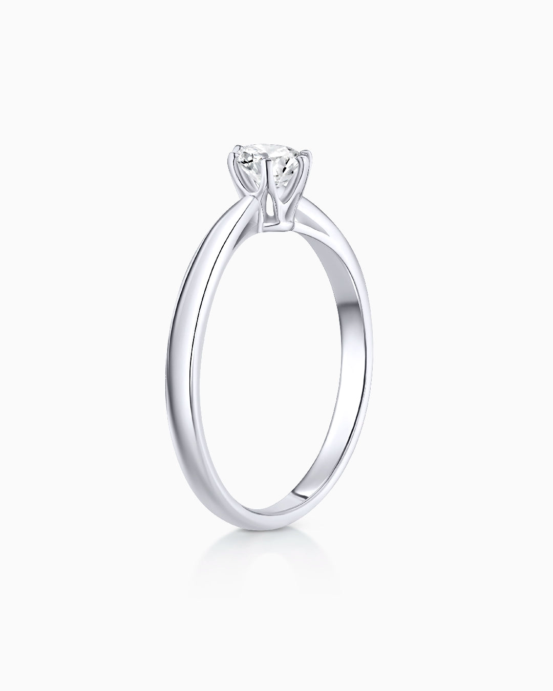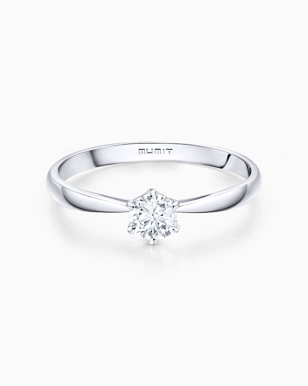 Solitario Always de diamante central elaborado en oro blanco de 18 Kt. El amor es el sentimiento más fuerte que existe y a la vez tan delicado como los destellos de un diamante. El solitario Always es la forma de decir “siempre” más innovadora y actual. Su robusta montura se afina hacia la parte central, aportando el máximo protagonismo a un espectacular diamante de 0,40 quilates en talla brillante. Su delicado y original engarce de seis garras es reinterpretado manteniendo el diamante en suspensión y consiguiendo un despliegue de luz inigualable. Diseñado para encajar a la perfección con cualquier alianza de la colección creando el dúo nupcial perfecto. Una sortija romántica con la que decir “Siempre tuyo, siempre mío, siempre nuestro”- Beethoven.El solitario Always está disponible en cuatro versiones adicionales de 0,10, 0,20, 0,30, 0,50 quilates.