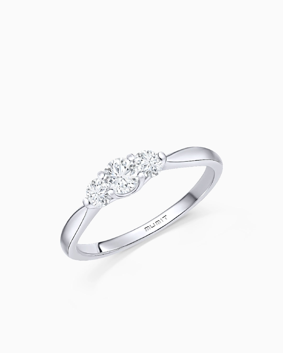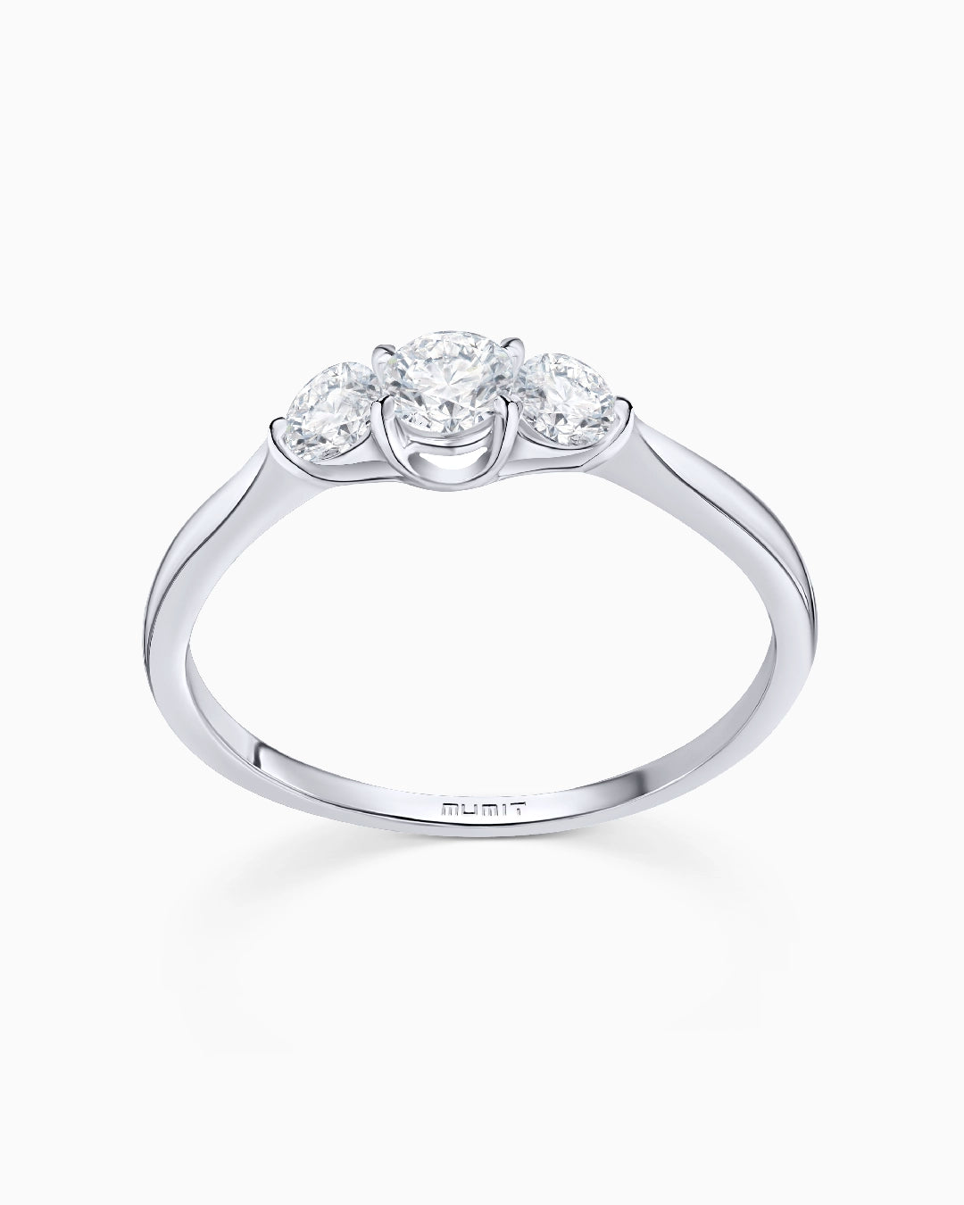 Sortija Tressa de diamantes engastada en oro blanco de 18 Kt. Estilizada y armoniosa, Tressa presenta una estructura inmensamente simbólica gracias al tresillo de diamantes que distingue el diseño representando el pasado, el presente y el futuro. El diamante central de 0,20 quilates es el protagonista, simbolizando el momento actual y su importancia, mientras que los diamantes adyacentes amplifican su brillo desde todos los ángulos, contando la deslumbrante historia de una promesa sin fin. Una joya de naturaleza marcadamente sentimental perfecta para una declaración de amor única que reflejará todos los recuerdos y sueños más mágicos por medio de su brillo eterno. La sortija Tressa está disponible en dos versiones adicionales de 0,30 y 0,80 quilates.