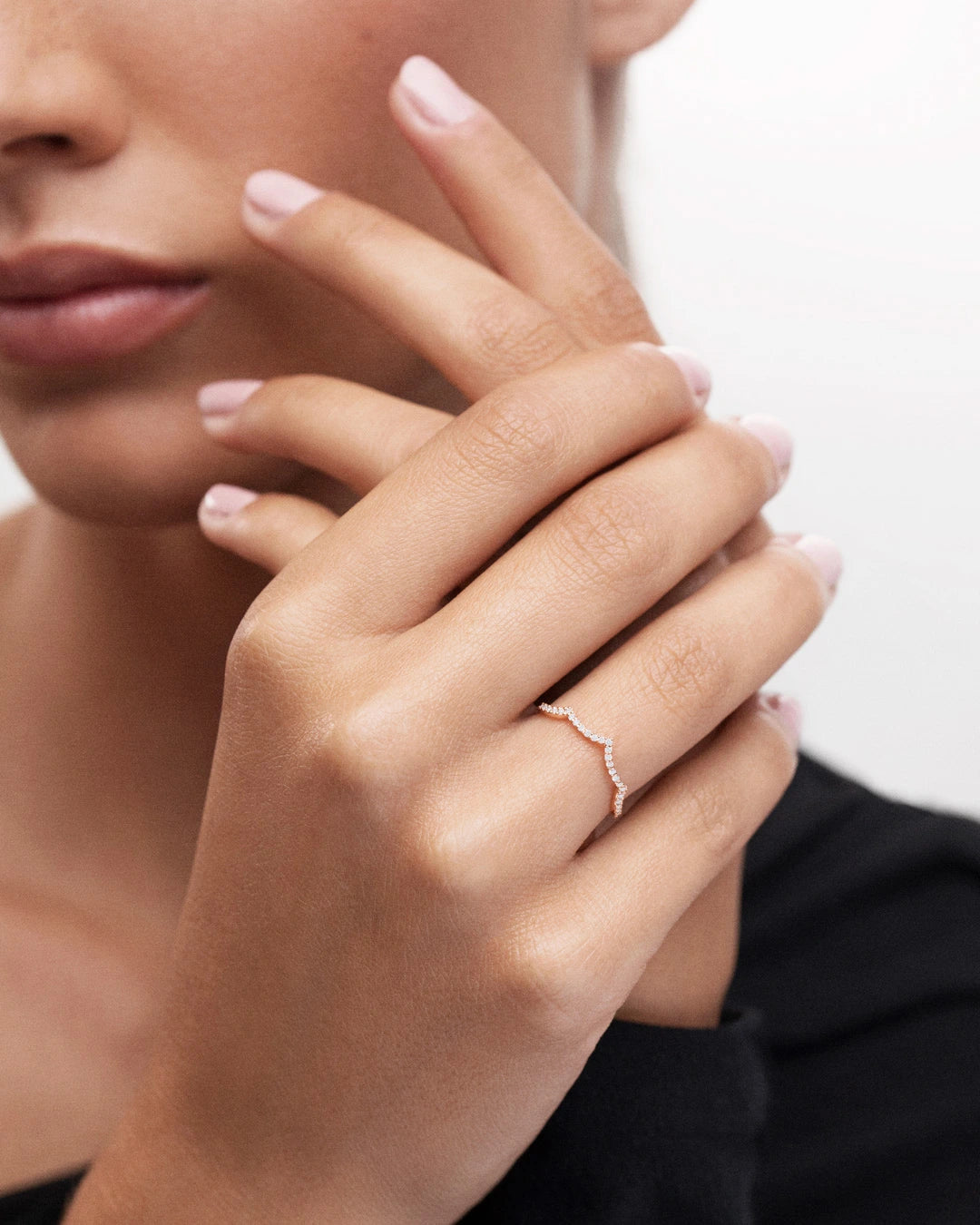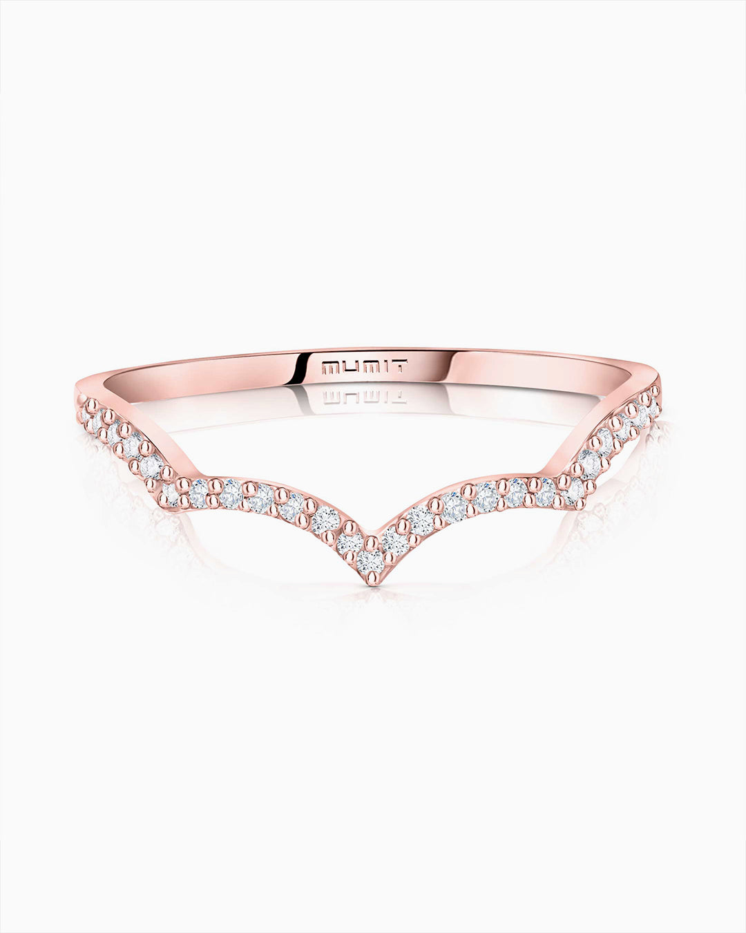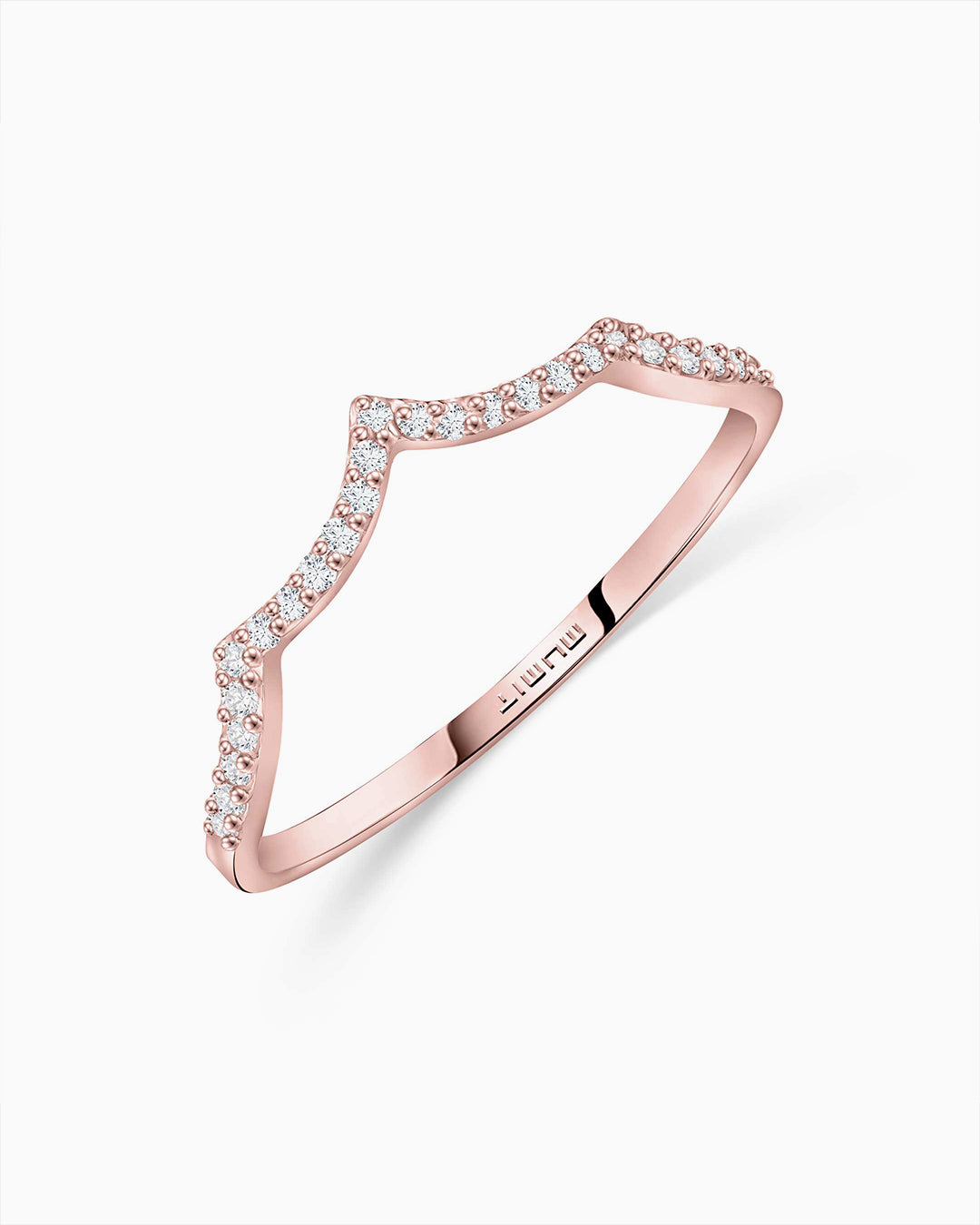 Sortija Volt Diamonds elaborada en oro rosa de 18 Kt. Creada en tres colores, oro blanco, rosa y amarillo de 18 Kt este diseño se inspira en el dinamismo de las ondas magnéticas que emanan de cada sonido. Una delicada metáfora en la que el movimiento único de las ondas que crean los sonidos se plasma en una pieza de joyería sin igual. Su elemento conductor, el brillo de los diamantes que vibra con gracia en la piel. Perfecta para 'ring stacking', esta sortija cuenta con el tamaño perfecto para combinarse con cualquier otra pieza de la colección Mumit. La sortija Volt Diamonds está disponible en tres versiones, oro rosa, amarillo y blanco de 18 Kt.