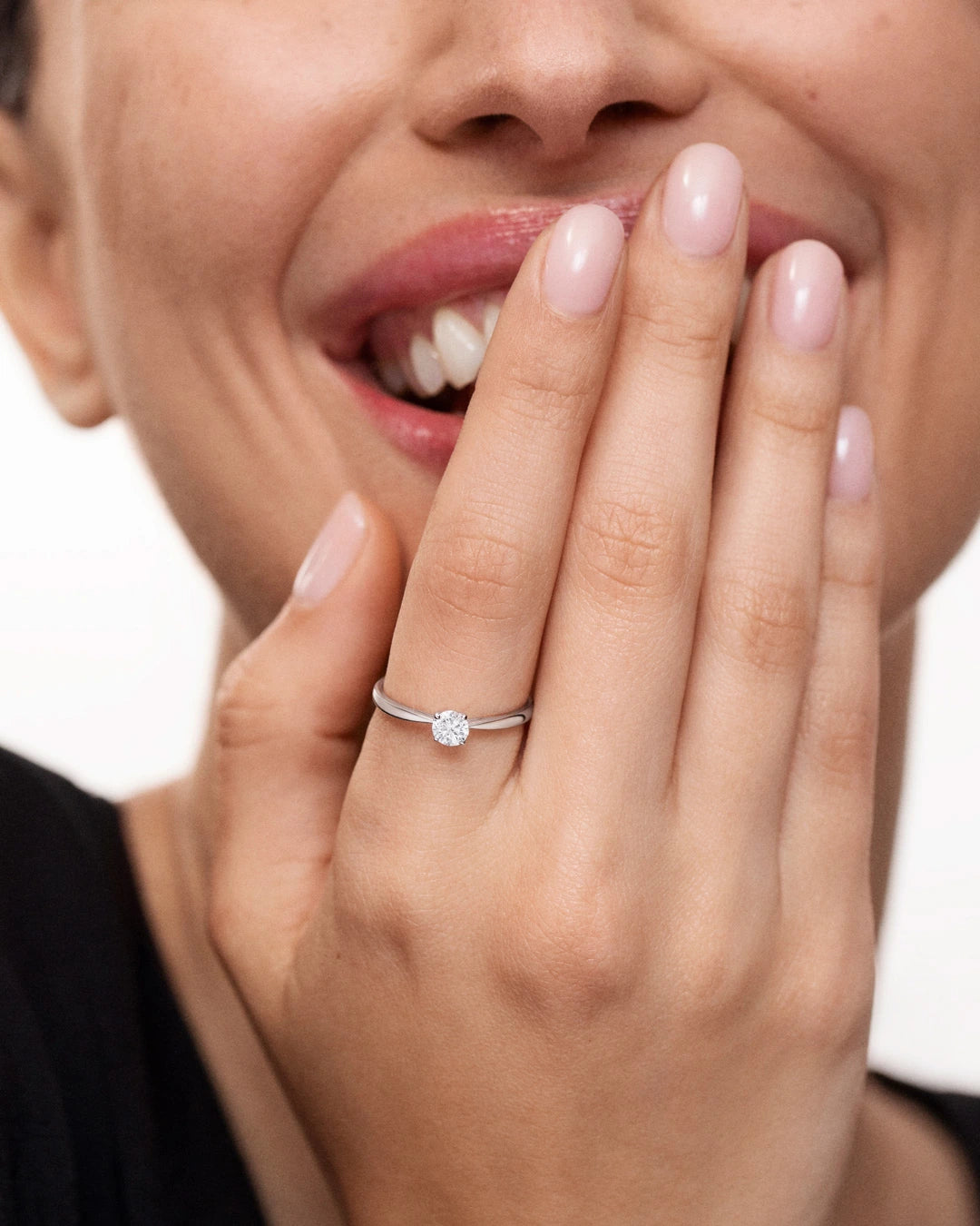 El amor es el sentimiento más fuerte que existe y a la vez tan delicado como los destellos de un diamante. El anillo solitario de compromiso Always es la forma de decir “Siempre” más innovadora y actual. Su robusta montura se afina de la forma más delicada aportando el máximo protagonismo a su diamante central en talla brillante de 0,30 quilates. Su delicado y original engarce de cuatro garras es reinterpretado manteniendo el diamante en suspensión consiguiendo un despliegue de luz inigualable. Diseñado para encajar a la perfección con cualquier alianza de la colección creando el dúo nupcial perfecto. Un anillo de compromiso romántico con el que decir “Siempre tuyo, siempre mío, siempre nuestro”- Beethoven. El solitario de compromiso Always está disponible en versiones adicionales de 0,20; 0,30; 0,40; 0,50; 0,70 y un quilate.