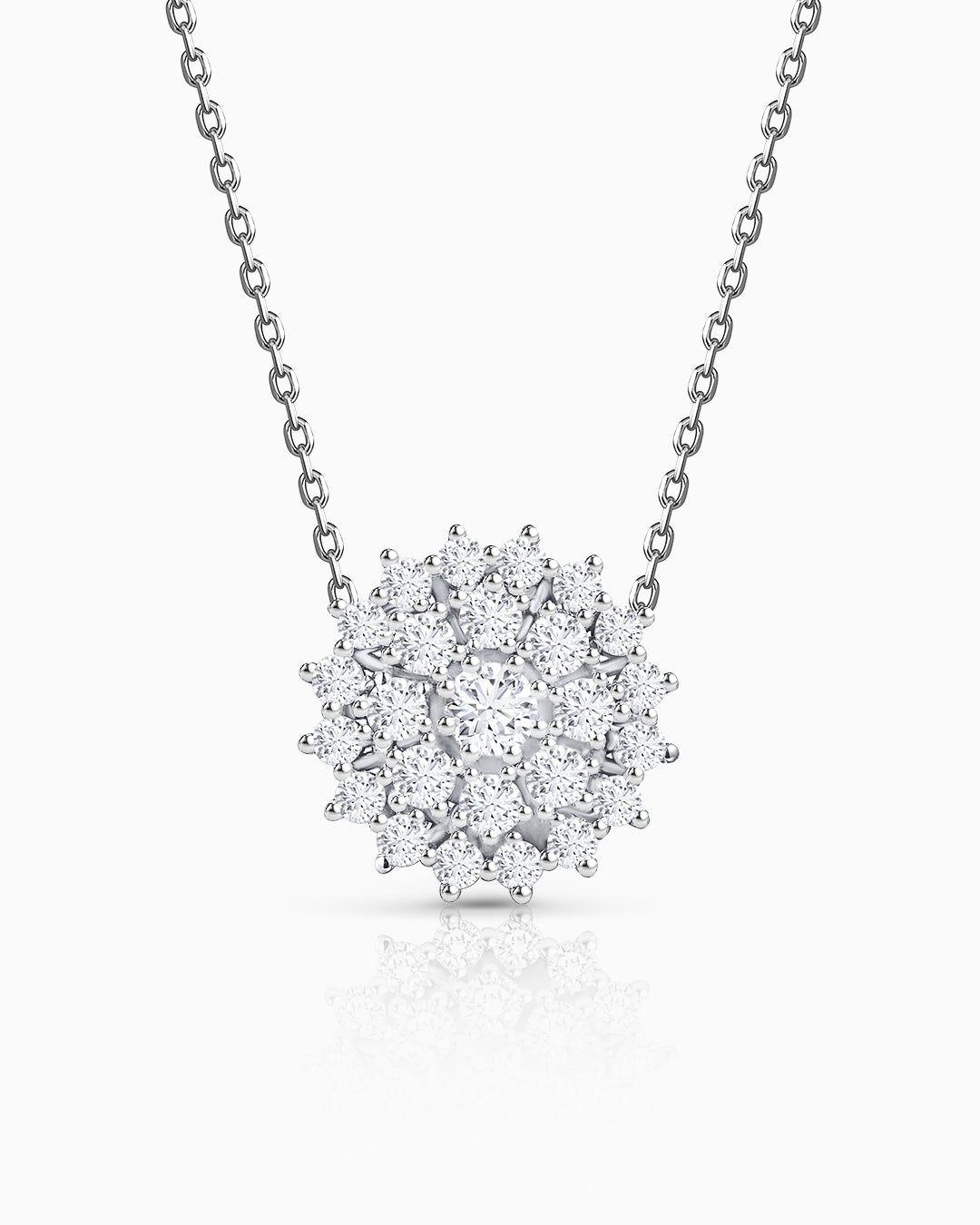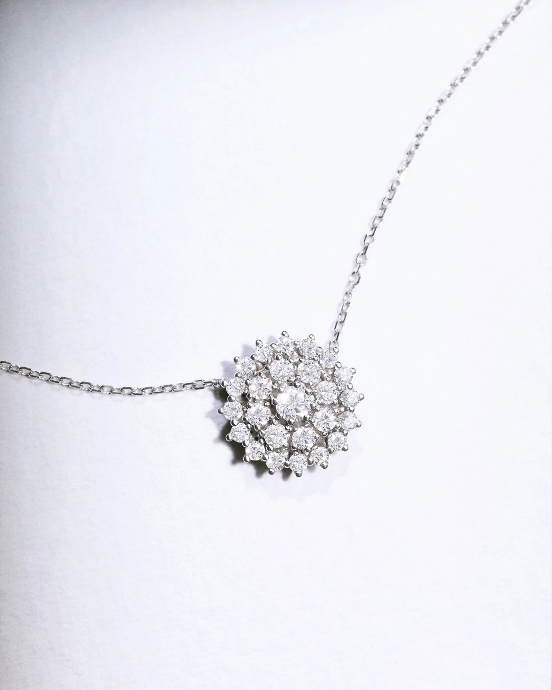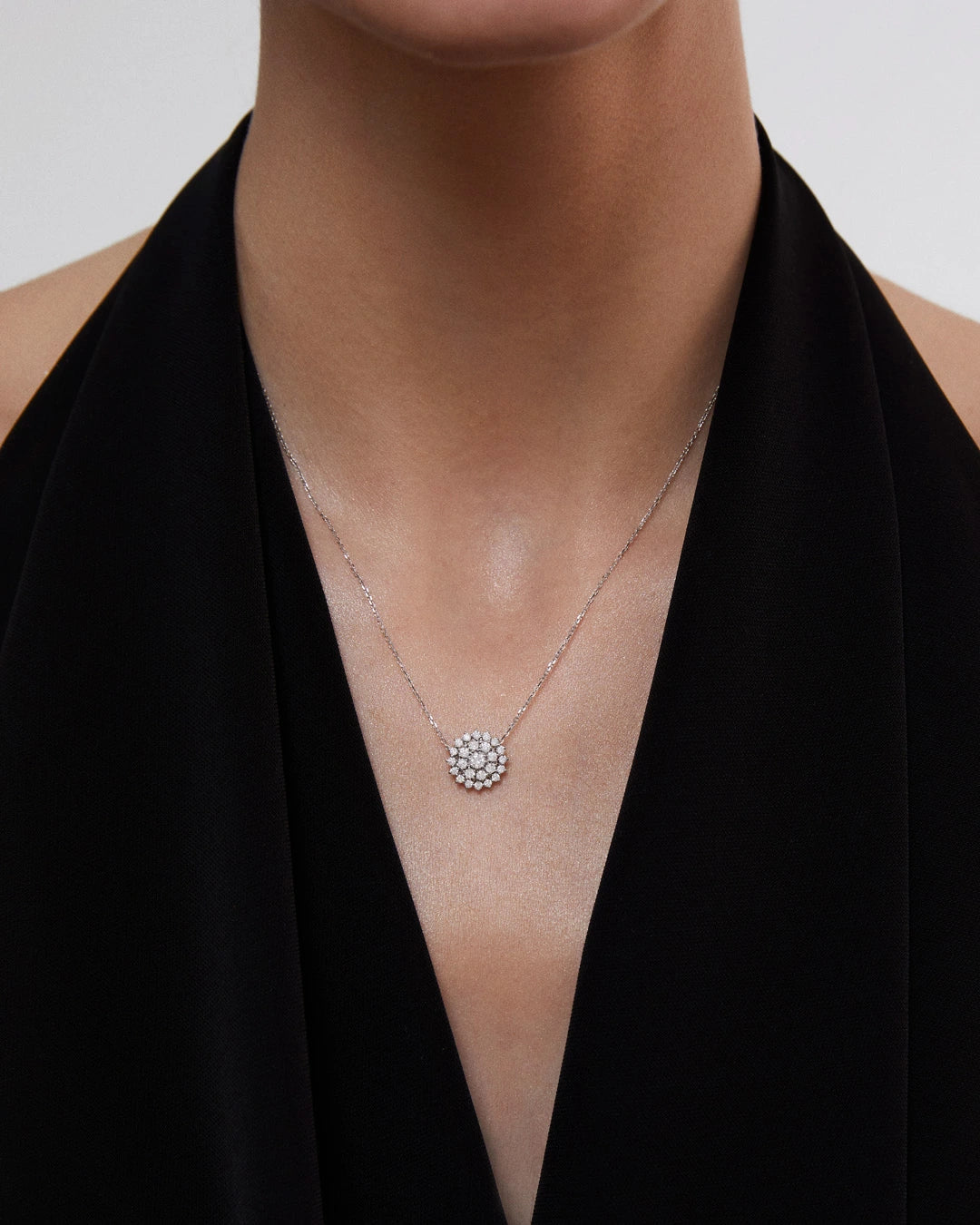 La gargantilla Blossom está inspirada en los patrones geométricos que surgen de forma espontánea en la naturaleza y, en concreto, en la delicada perfección de las flores. Su diseño se distingue por un impresionante total de 25 diamantes naturales en talla brillante, dispuestos en una secuencia concéntrica que aporta profundidad a la pieza. El resultado es una joya sofisticada y singular que parece florecer con cada movimiento, evocando el mágico instante en el que los pétalos de una flor se despliegan por primera vez. Estos exquisitos diamantes han sido engastados a mano en una montura de garras que realza su brillo desde cada ángulo, destacando tanto la pureza de cada piedra como el esplendor del conjunto. Como símbolo eterno de belleza y transformación, Blossom es la elección perfecta para añadir un toque de elegancia y significado a las ocasiones más especiales.