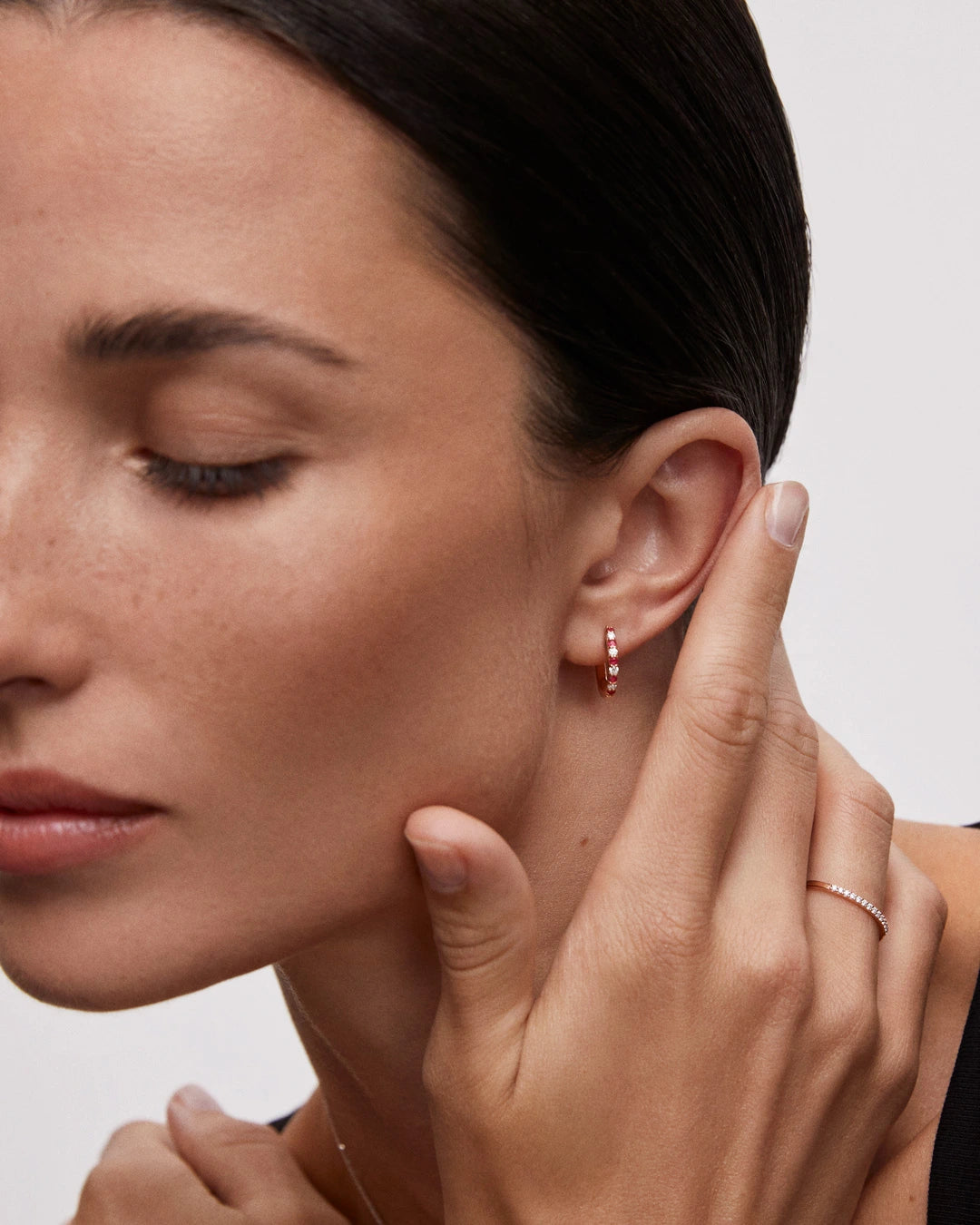 Fieles a su nombre, los pendientes de aro Allegra reflejan vitalidad y alegría en cada destello. El tono cálido del oro rosa de 18 quilates se une a un elegante pavé de rubíes y diamantes naturales, logrando un diseño fresco que refleja el equilibrio perfecto entre color y brillo. Concebidos para adaptarse a todo tipo de ocasiones, aportan un toque de luz único al rostro, elevando cualquier estilismo con una elegancia que desafía las tendencias. Descubre la reinterpretación del aro clásico con Mumit y celebra la magia del color con una joya atemporal y sofisticada.