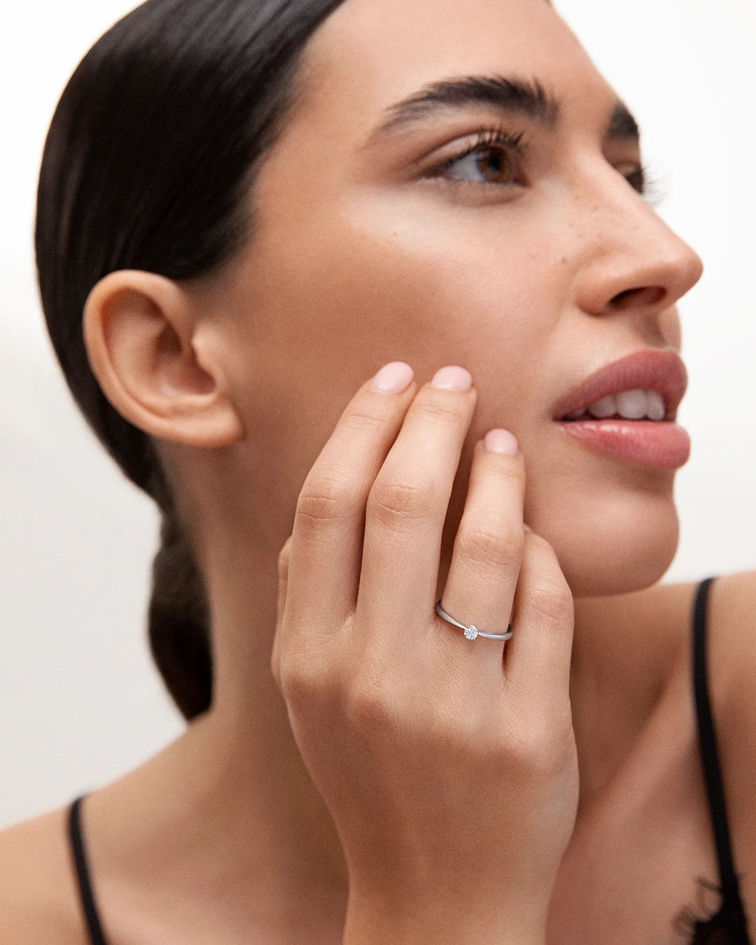 El amor es el sentimiento más fuerte que existe y a la vez tan delicado como los destellos de un diamante. El anillo solitario de compromiso Always es la forma de decir “Siempre” más innovadora y actual. Su robusta montura se afina de la forma más delicada aportando el máximo protagonismo a su diamante central en talla brillante de 0,10 quilates. Su delicado y original engarce de cuatro garras es reinterpretado manteniendo el diamante en suspensión consiguiendo un despliegue de luz inigualable. Diseñado para encajar a la perfección con cualquier alianza de la colección creando el dúo nupcial perfecto. Un anillo de compromiso romántico con el que decir “Siempre tuyo, siempre mío, siempre nuestro”- Beethoven. El solitario de compromiso Always está disponible en versiones adicionales de 0,20; 0,30; 0,40; 0,50; 0,70 y un quilate.