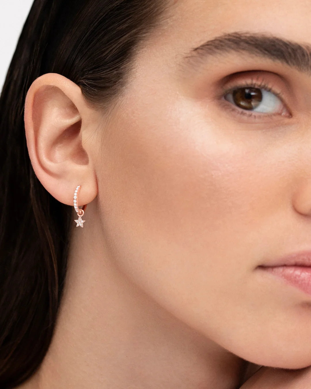 Charm para pendiente de aro Estrella Moon Diamonds elaborado en oro rosa de 18 Kt. La clásica fig...