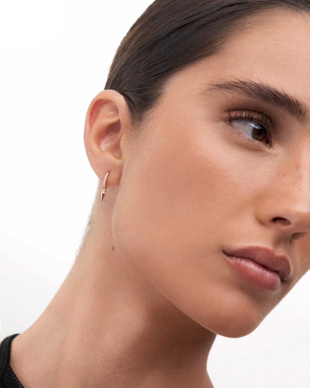 Charm para pendiente de aro Punk de diamantes elaborado en oro rosa de 18 Kt. Su forma ligeramente afilada le aportará el toque 'punk' que quieres para tu oreja, si buscas una joya original y atrevida. Los diamantes en talla brillante que incorpora, logran junto a su diseño único una fusión entre elegancia y modernidad que te enamorará. También disponible en oro amarillo y blanco, combina a la perfección con los pendientes Petite Diamonds Aro, Pendientes Eternity Colors Aro y Piercings Aro Punk.