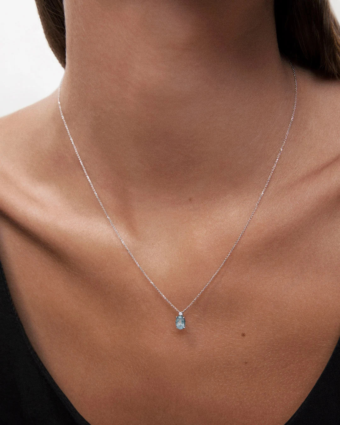 Gargantilla Amelie Oval de Aguamarina en Oro Blanco de 18 Kt