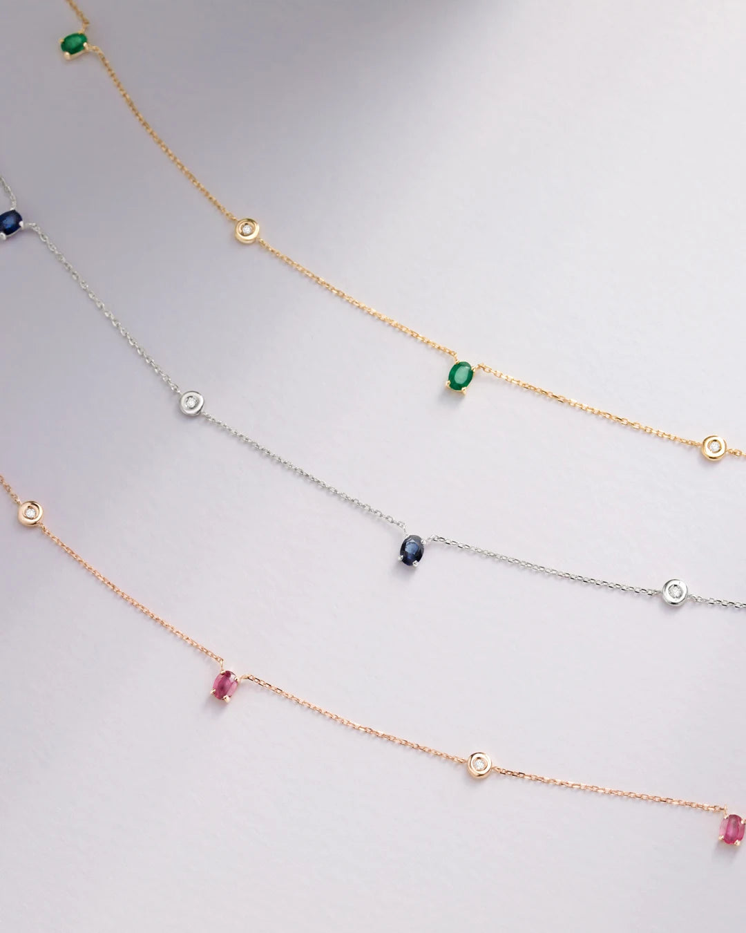 - Disponible también en oro amarillo de 18 Kt con esmeraldas y diamantes y en oro blanco de 18 Kt con zafiros y diamantes