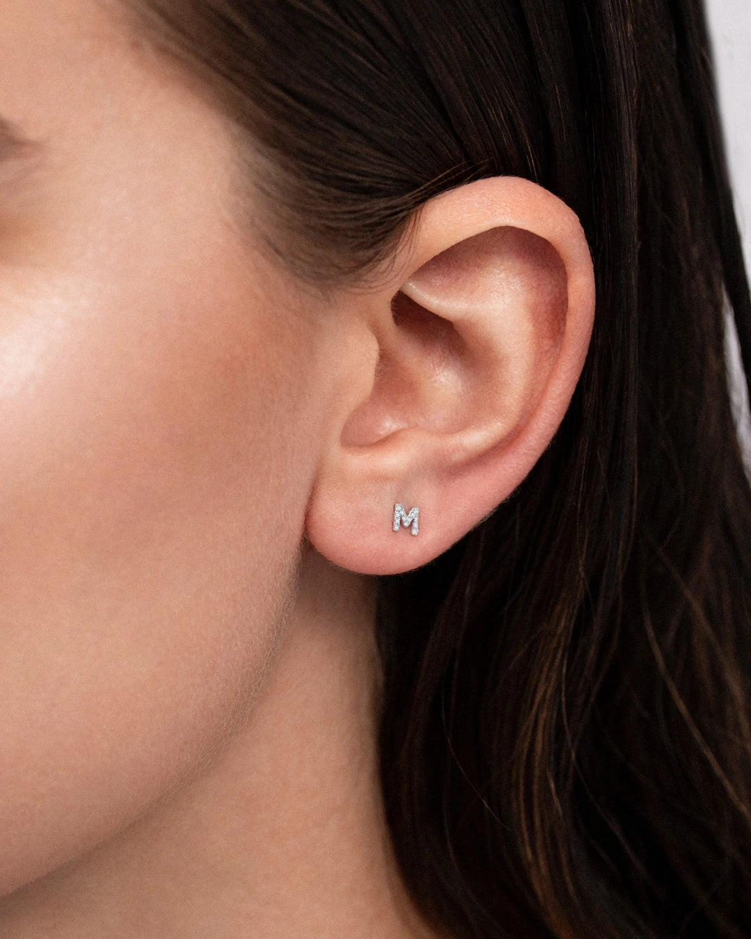 El pendiente piercing My Initial de diamantes en oro blanco de 18 Kt es perfecto para personalizar el look de tu oreja. Selecciona la inicial que desees en el menú desplegable y lleva a tu lado este sutil toque de personalidad. Se trata de un pendiente tan delicado como versátil ya que se puede llevar tanto en lóbulo como en cartílago creando looks frescos y originales. Combínalo con nuestro aro Petite Diamonds en oro blanco de 18 Kt y diamantes para conseguir un total look Mumit.