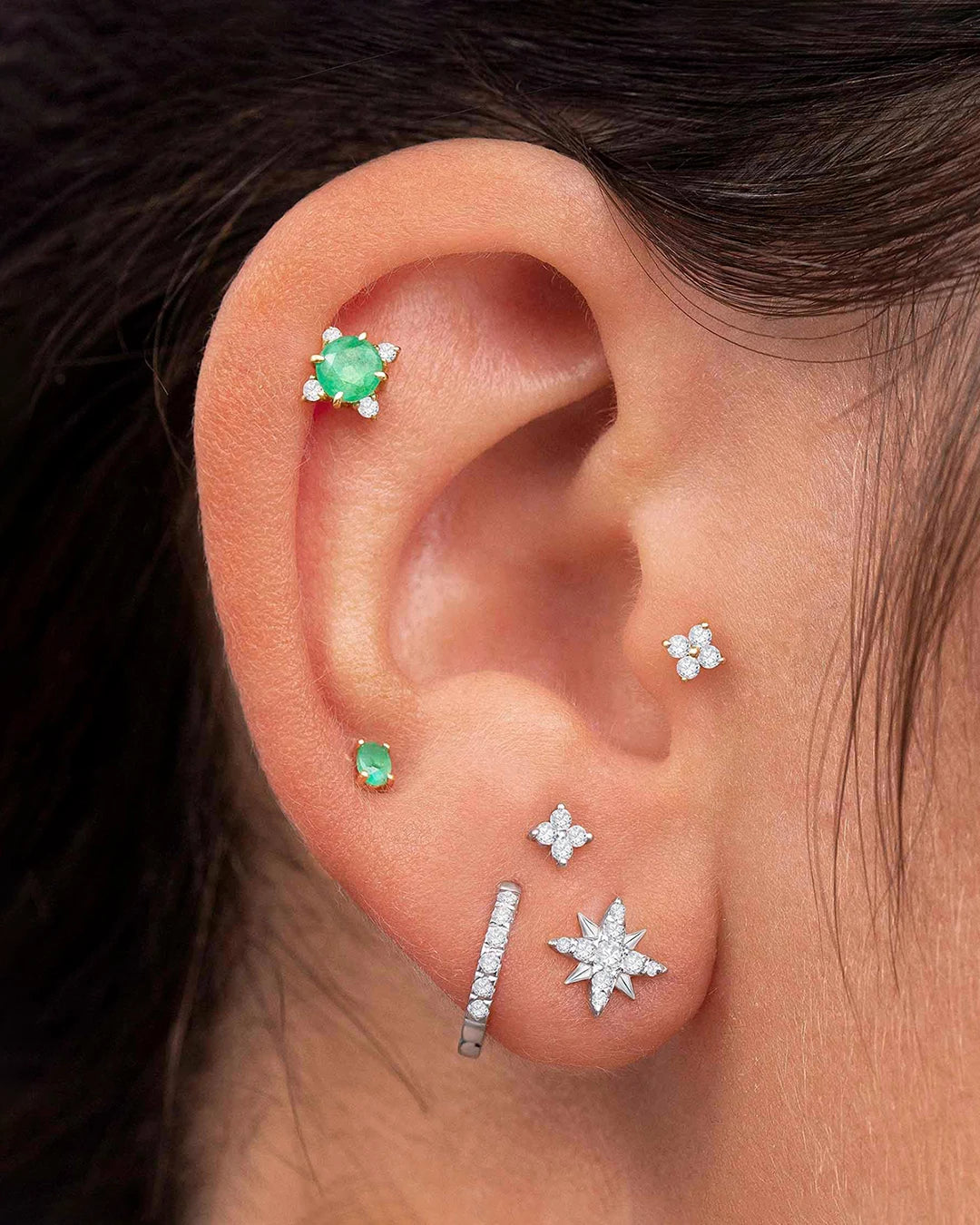 - Pendiente piercing esmeralda oval mini