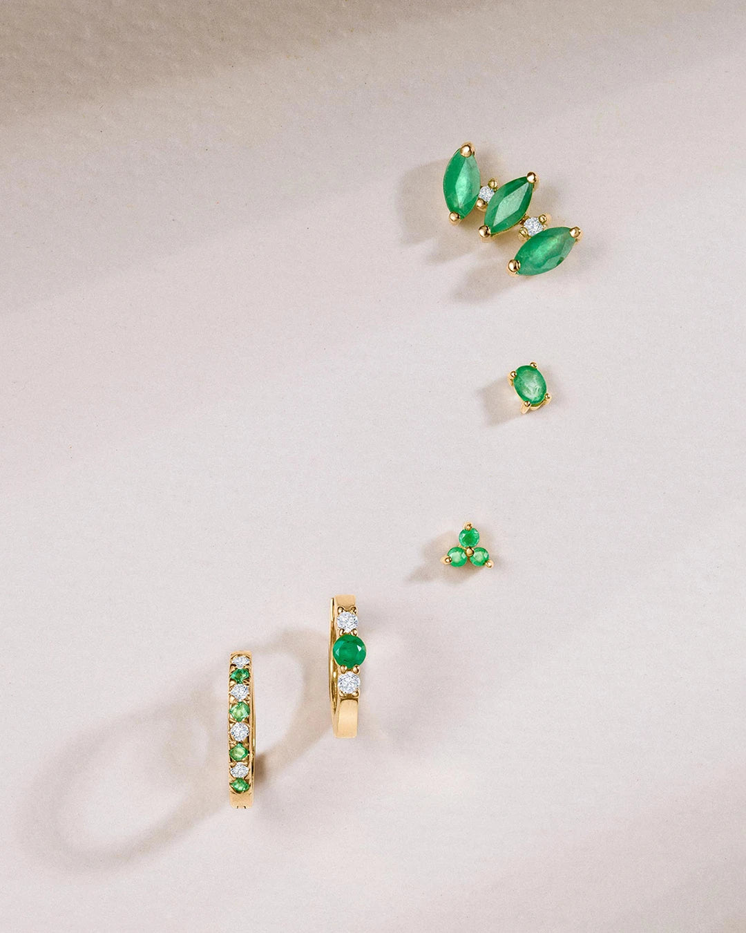 Pendiente Piercing de Esmeralda Oval Mini en Oro Amarillo de 18 Kt