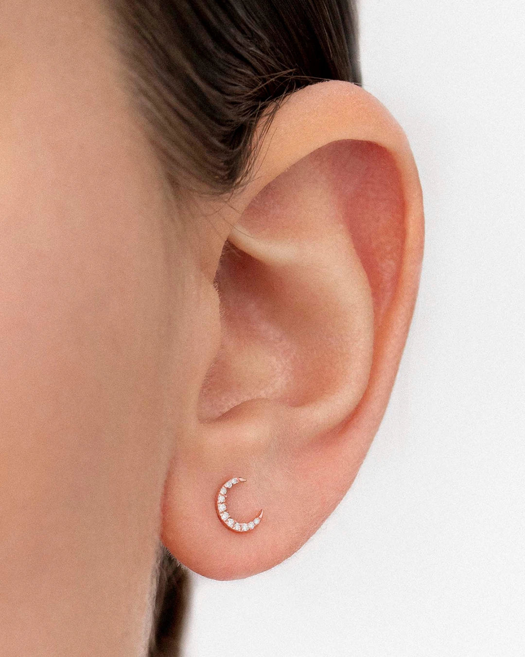 Pendiente Piercing Luna Moon Diamonds en Oro Rosa de 18 Kt