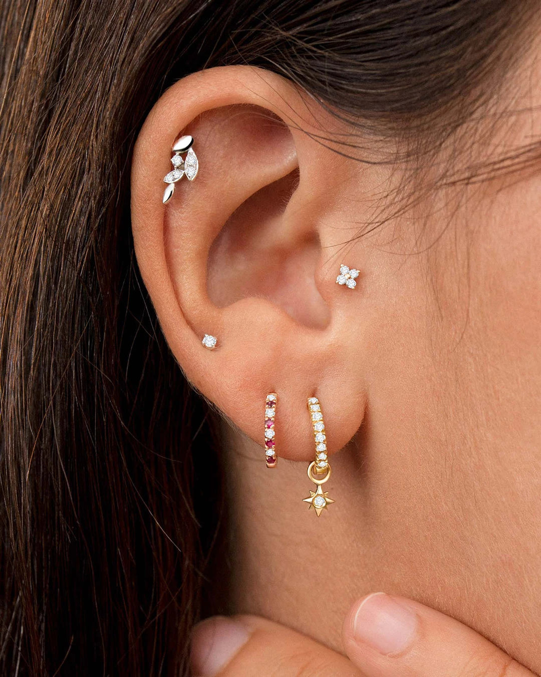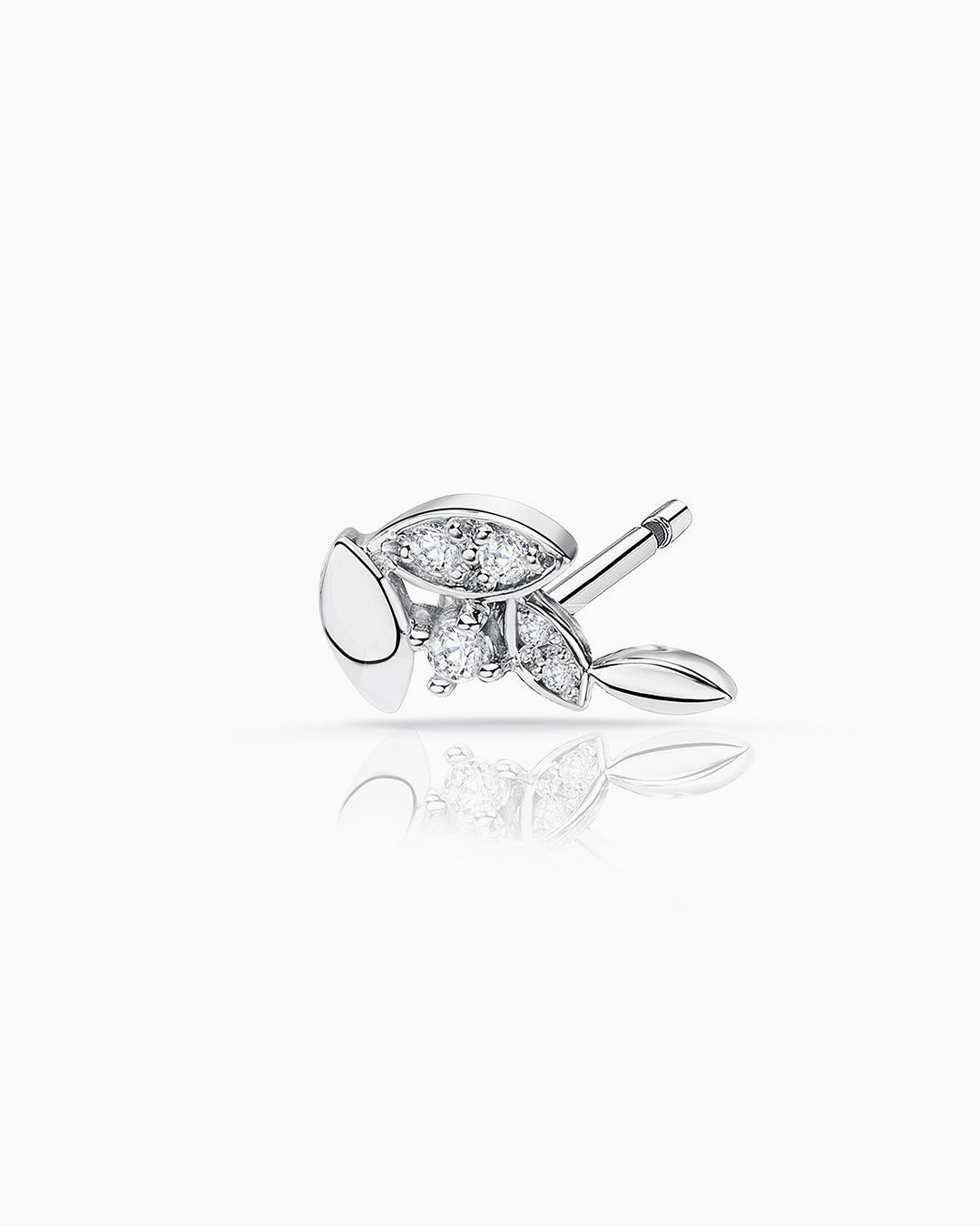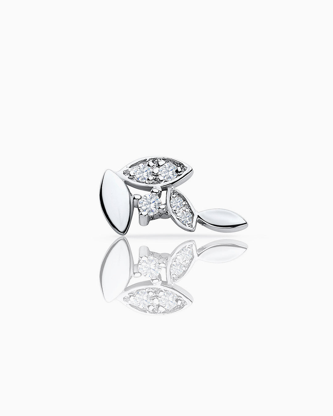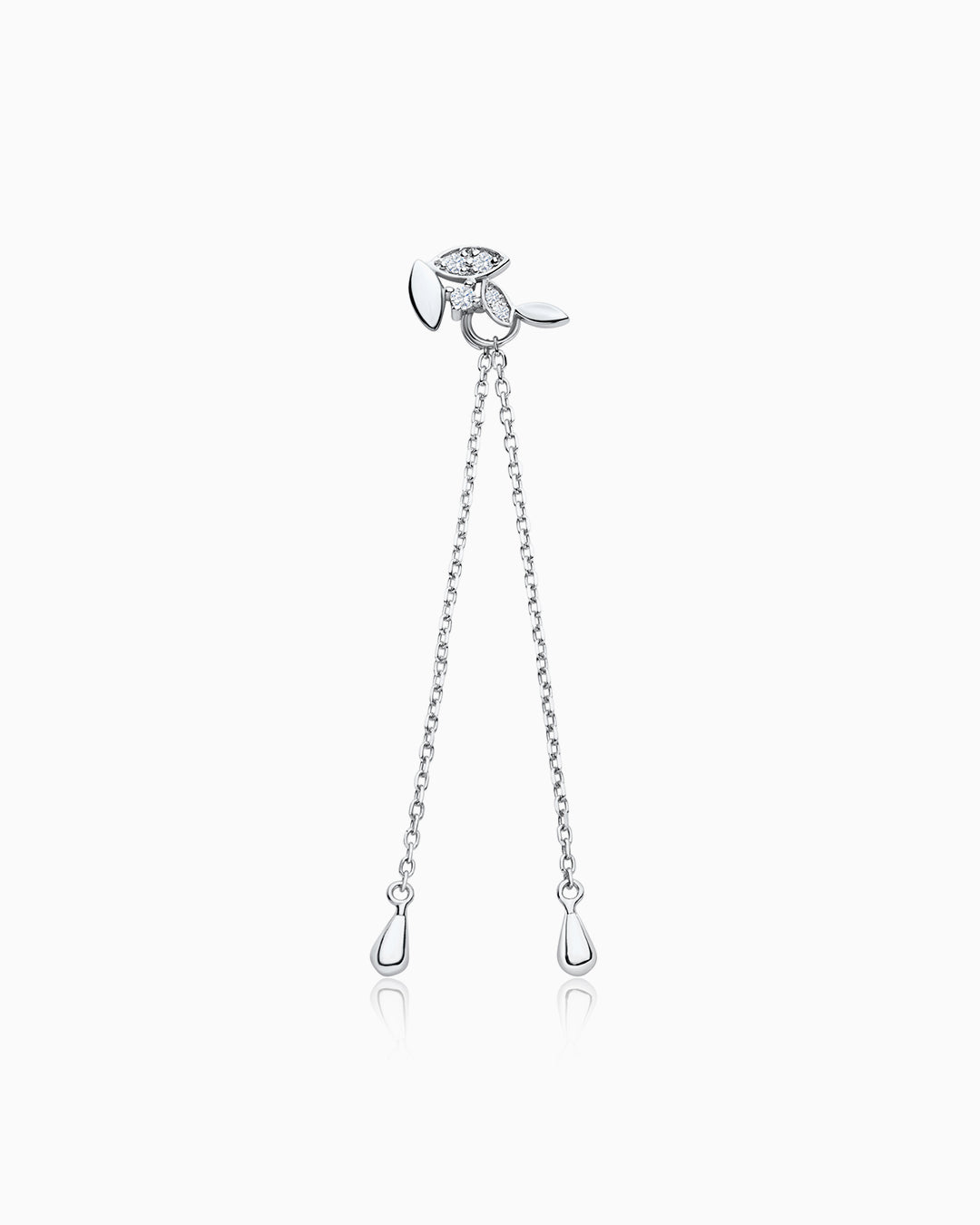 Pendiente Piercing Petite Diamonds Hojas y Cadenas en Oro Blanco de 18 Kt