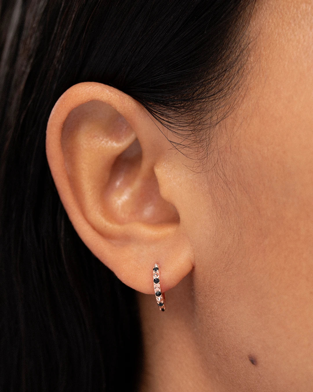 Pendiente tipo piercing de aro Raxel Large de diamante negro elaborado en oro rosa de 18 Kt. El a...