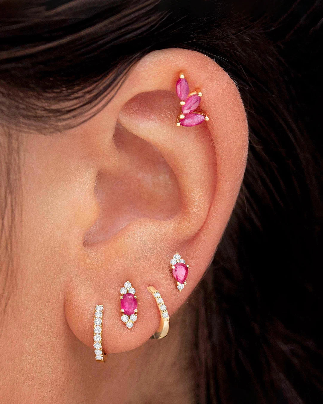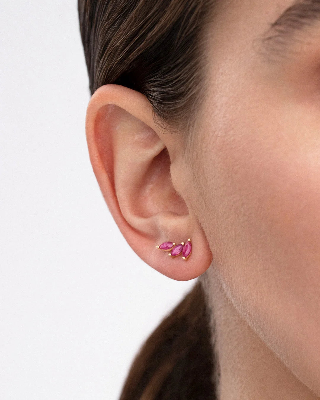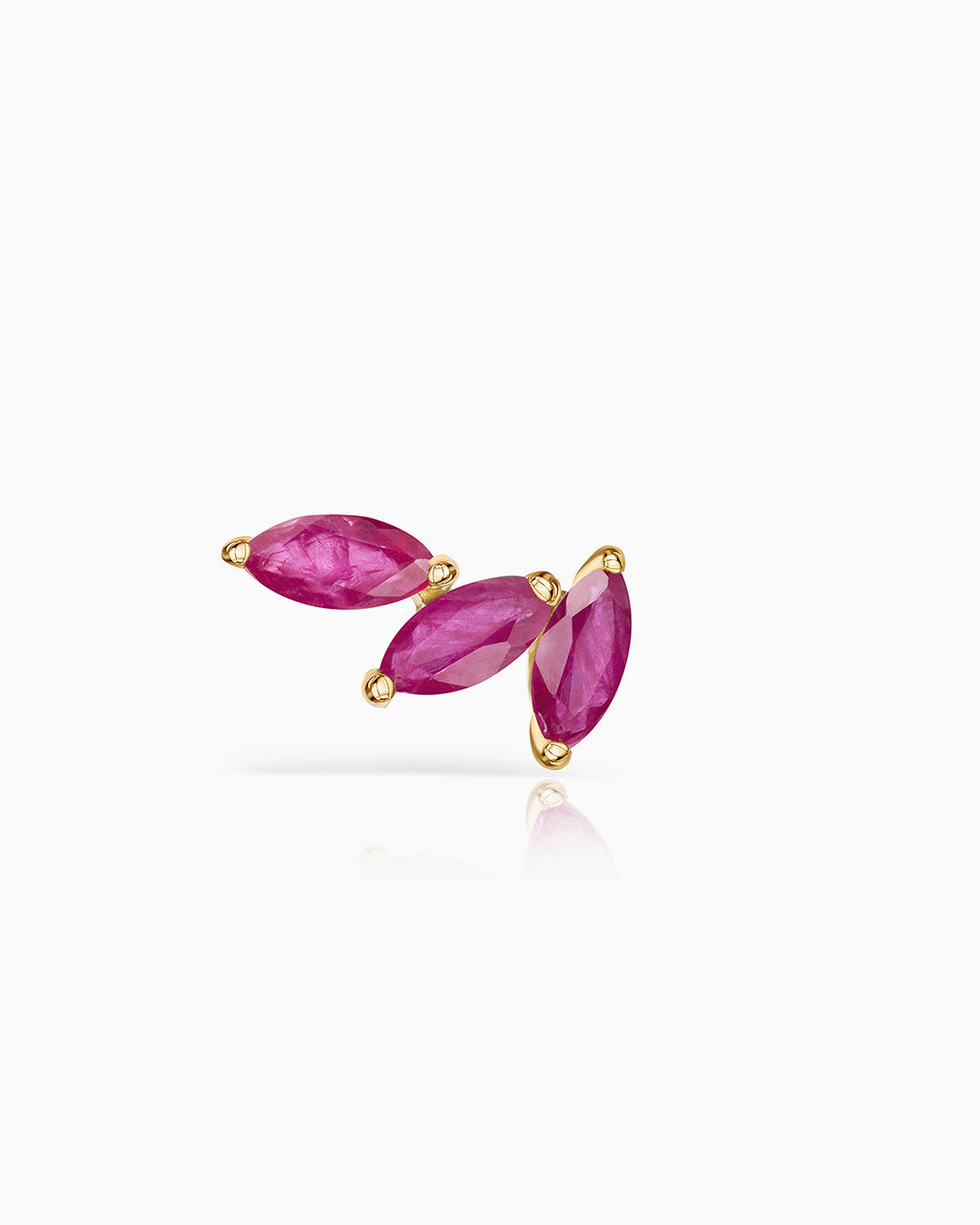 Pendiente Piercing Tri-Marquise Rubí en Oro Amarillo de 18 Kt