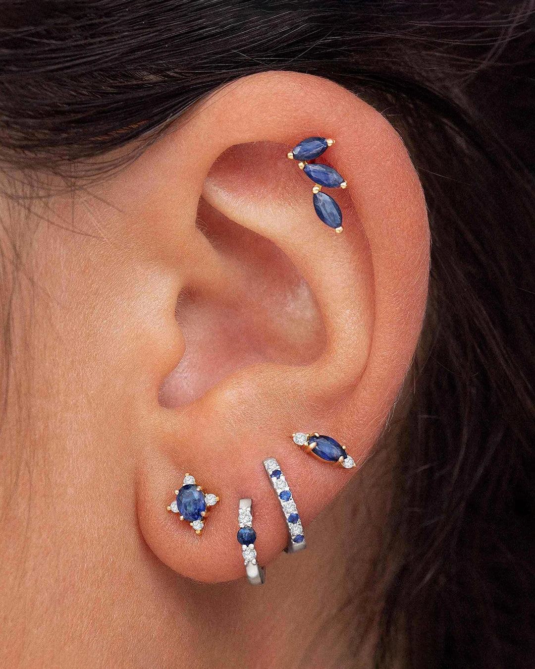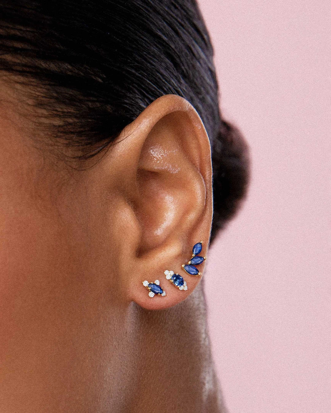 Pendiente Piercing Tri-Marquise Zafiro en Oro Amarillo de 18 Kt
