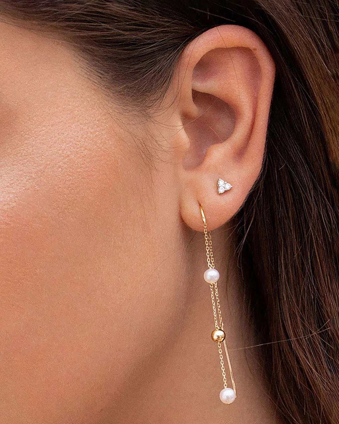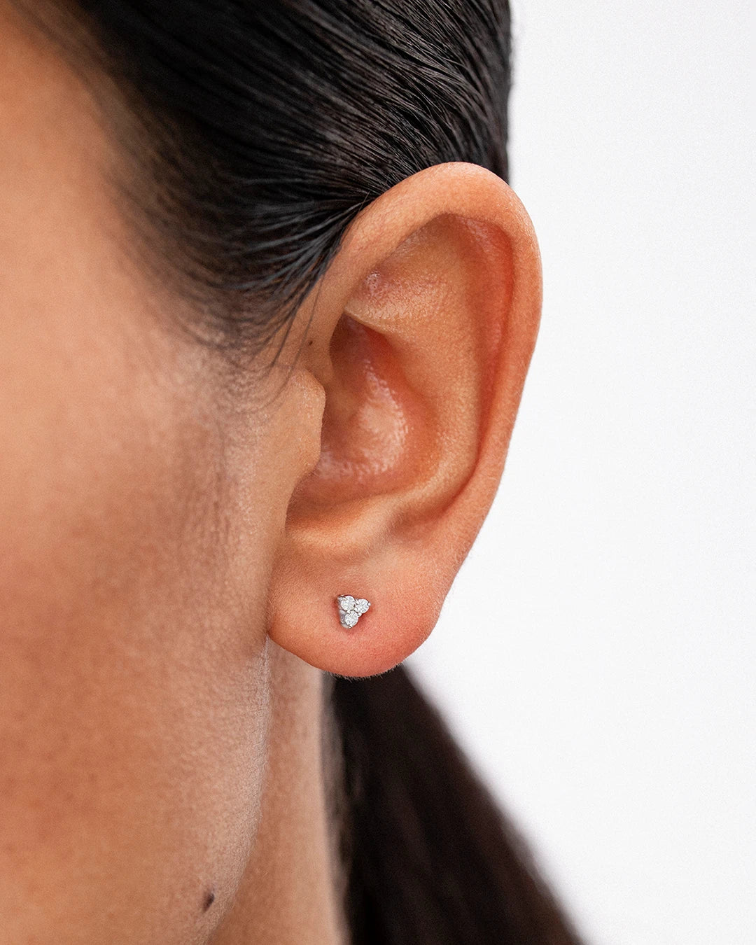 Pendiente piercing Triangle de diamantes en oro blanco de 18 Kt. Su diseño formado por tres relucientes diamantes forma un delicado triángulo que simboliza el poder femenino. Se trata de un pendiente creado para hélix o cartílago que también puedes usar en el lóbulo como principal o secundario, ya que posee el tamaño ideal para adaptarse a tus necesidades. Un delicado destello de luz que iluminará cualquier look, tanto los más actuales como los clásicos. Tiene un cierre de presión para aportar seguridad, pero si lo deseas, puedes pedirlo con un cierre especial de rosca para hélix o cartílago, puedes pedirlo en el menú superior (este extra tiene un coste adicional de 6€). ¡Únete a la tendencia de moda y crea tu ear look con Mumit!