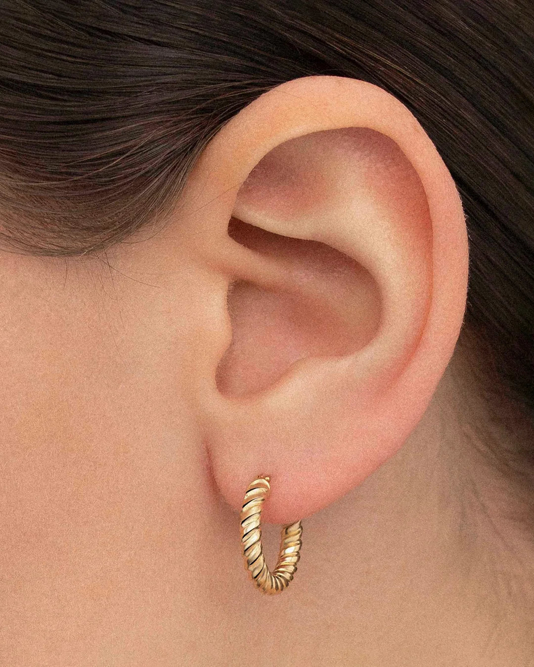 Los Pendientes Aro Gallonado son un básico que nunca pasa de moda. Inspirados en el diseño de los aros clásicos, los aros Gallonados aportan un twist a través de su diseño en forma de espiral que atrae la luz con el movimiento del pendiente. Se trata de unos pendientes de tamaño medio pequeño, ya que miden 10 milímetros de diámetro. Fabricados en oro amarillo de 18 Kt, estos favorecedores pendientes incluyen un cierre de tipo catalán que les aporta comodidad a la hora de ponerse y seguridad. Además no pesan nada, seguro que te enamoras nada más sacarlos de su caja.