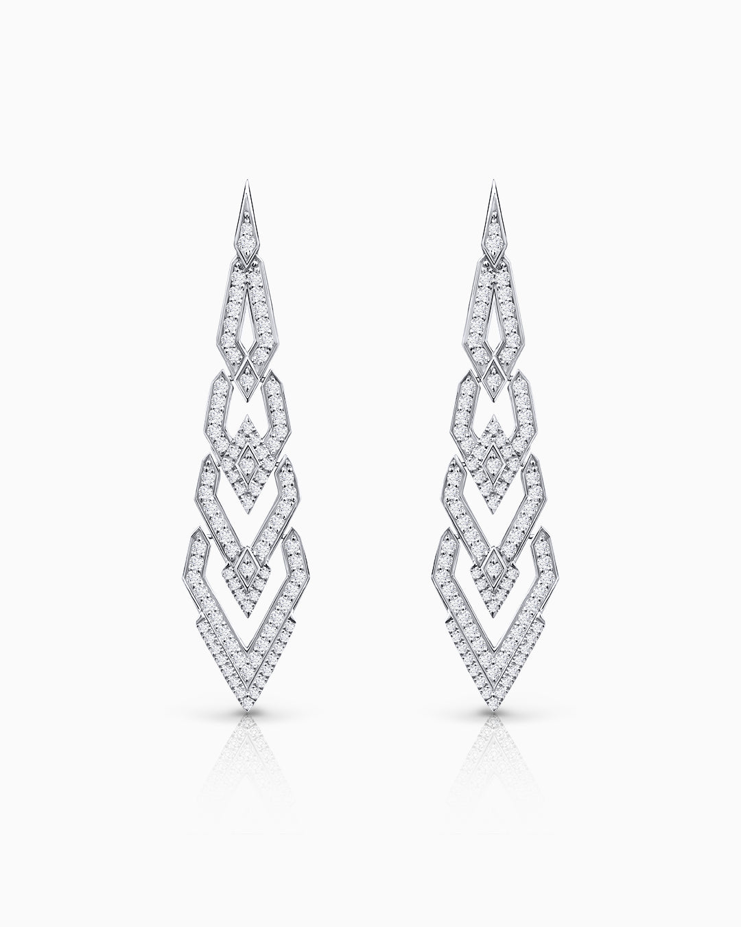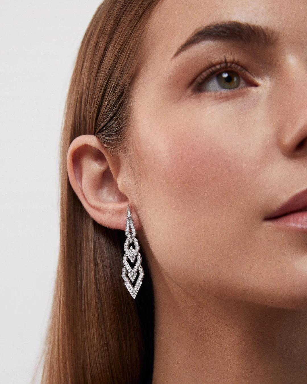 Inspirados en la mujer para la que se inventó el término it girl, los pendientes Clara capturan la energía magnética de Clara Bow: pura presencia y carisma. Como símbolo indiscutible del glamour de los años 20, la actriz encarna a la perfección el espíritu moderno y rompedor del art déco, un movimiento que redefinió los códigos de la feminidad. El diseño de simetrías escalonadas y juegos de profundidad de los pendientes rinde homenaje a esta inconfundible estética, que, como Clara, nunca pasa de moda. Engastados con un impresionante conjunto de 184 diamantes naturales en talla brillante con un total de 1,51 quilates, irradian luz y personalidad desde cada ángulo. Descubre el equilibrio perfecto entre inspiración vintage y esencia contemporánea con los pendientes Clara, una declaración de estilo deslumbrante que trasciende el tiempo y las tendencias.