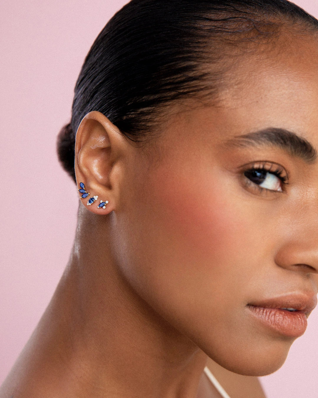 Pendientes Crown II de zafiros montados en oro amarillo de 18 Kt. Inspirados en la historia de la realeza que se mantiene viva a través del brillo de las joyas más preciadas, las coronas y tiaras reales. Las piezas de la colección Crown son una exquisita interpretación minimalista de las imponentes gemas que daban vida a las joyas de La Corona. Una joya llena de color y brillo, la perfecta fusión entre elegancia y modernidad cuyo protagonista es un sorprendente zafiro central en talla oval custodiado por seis diamantes en talla brillante que evocan la forma de una flecha. Los pendientes de la colección Crown están disponibles en oro amarillo de 18 Kt y en varias versiones, con gema central en talla brillante, marquesa y oval, con rubí, esmeralda o zafiro.
