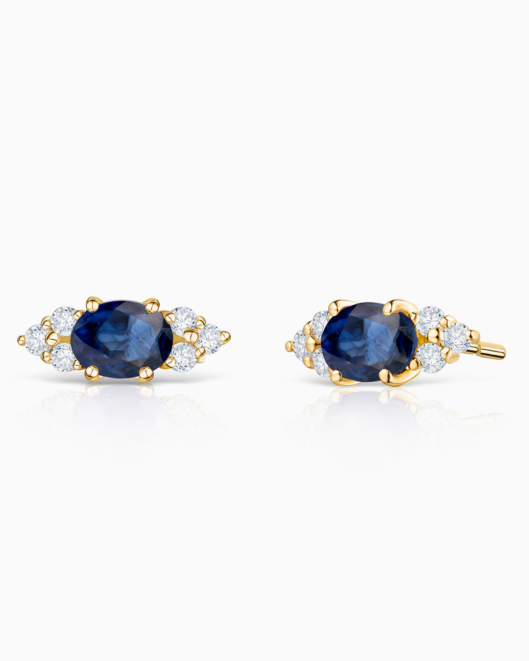 Pendientes Crown II Oval de Zafiro en Oro Amarillo de 18 Kt