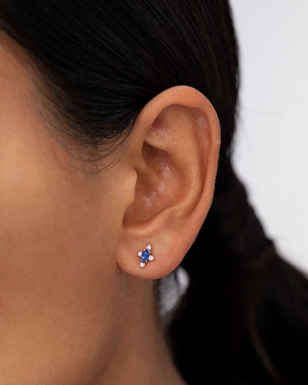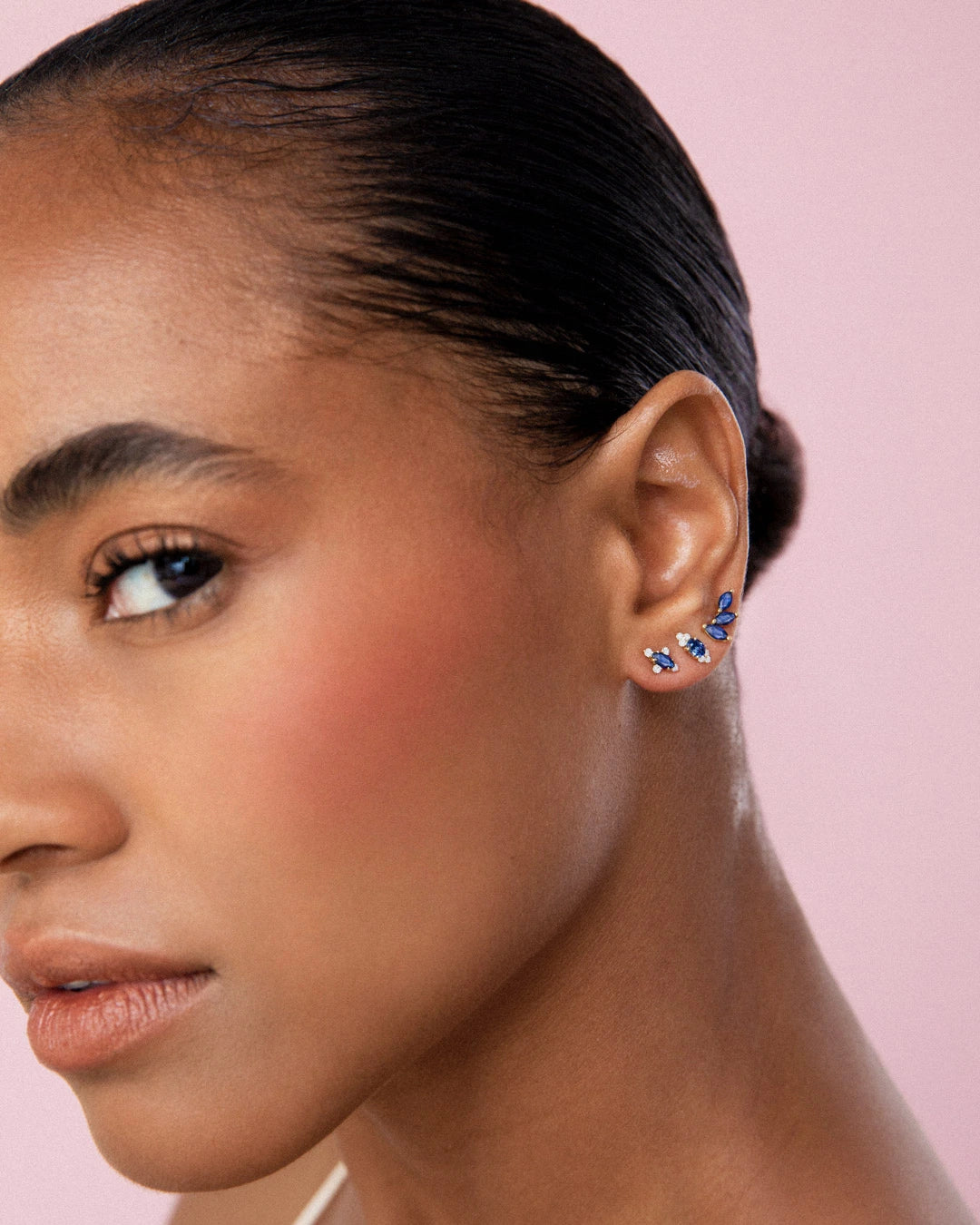 Pendientes Crown Marquise de Zafiro en Oro Amarillo de 18 Kt. Inspirados en la historia de la realeza que se mantiene viva a través del brillo de las joyas más preciadas, las coronas y tiaras reales. Las piezas de la colección Crown son una exquisita interpretación minimalista de las imponentes gemas que daban vida a las joyas de La Corona. Una joya llena de color y brillo, los originales pendientes Crown Marquise son la perfecta fusión entre elegancia y modernidad en una joya cuyo protagonista es un zafiro a en talla marquesa custodiado por cuatro diamantes en talla brillante. Cada pendiente de la colección Crown ha sido diseñado teniendo en cuenta los ángulos de la oreja y su posición, haciendo de cada pieza una joya ideal para lóbulo, hélix, cartílago o tragus. Crown, una colección cargada de elegancia moderna que representa pasado y presente a través de su brillo.Los pendientes Crown están disponibles en oro amarillo de 18 Kt y en varias versiones, con gema central en talla marquesa u oval y con rubí, esmeralda o zafiro.