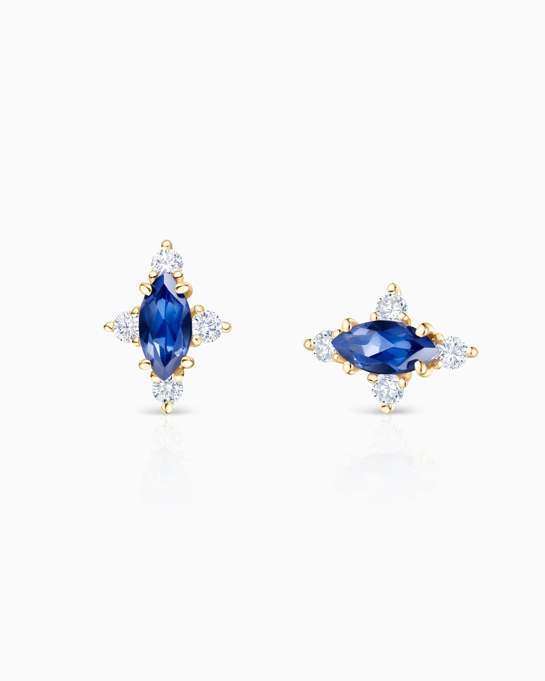Pendientes Crown Marquise de Zafiro en Oro Amarillo de 18 Kt