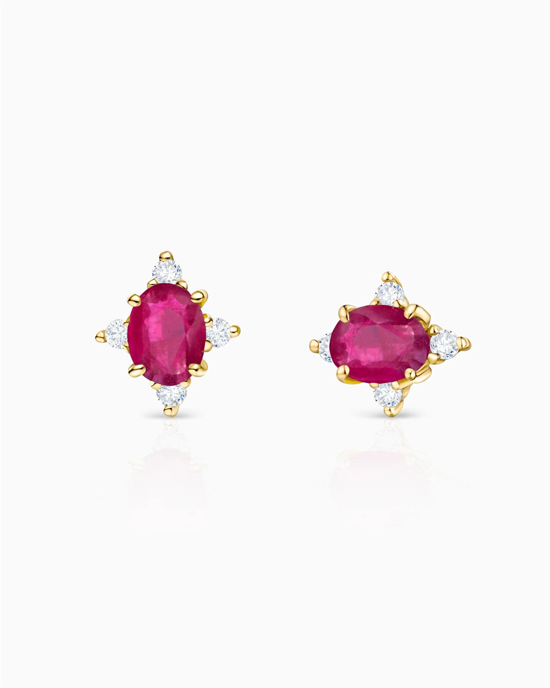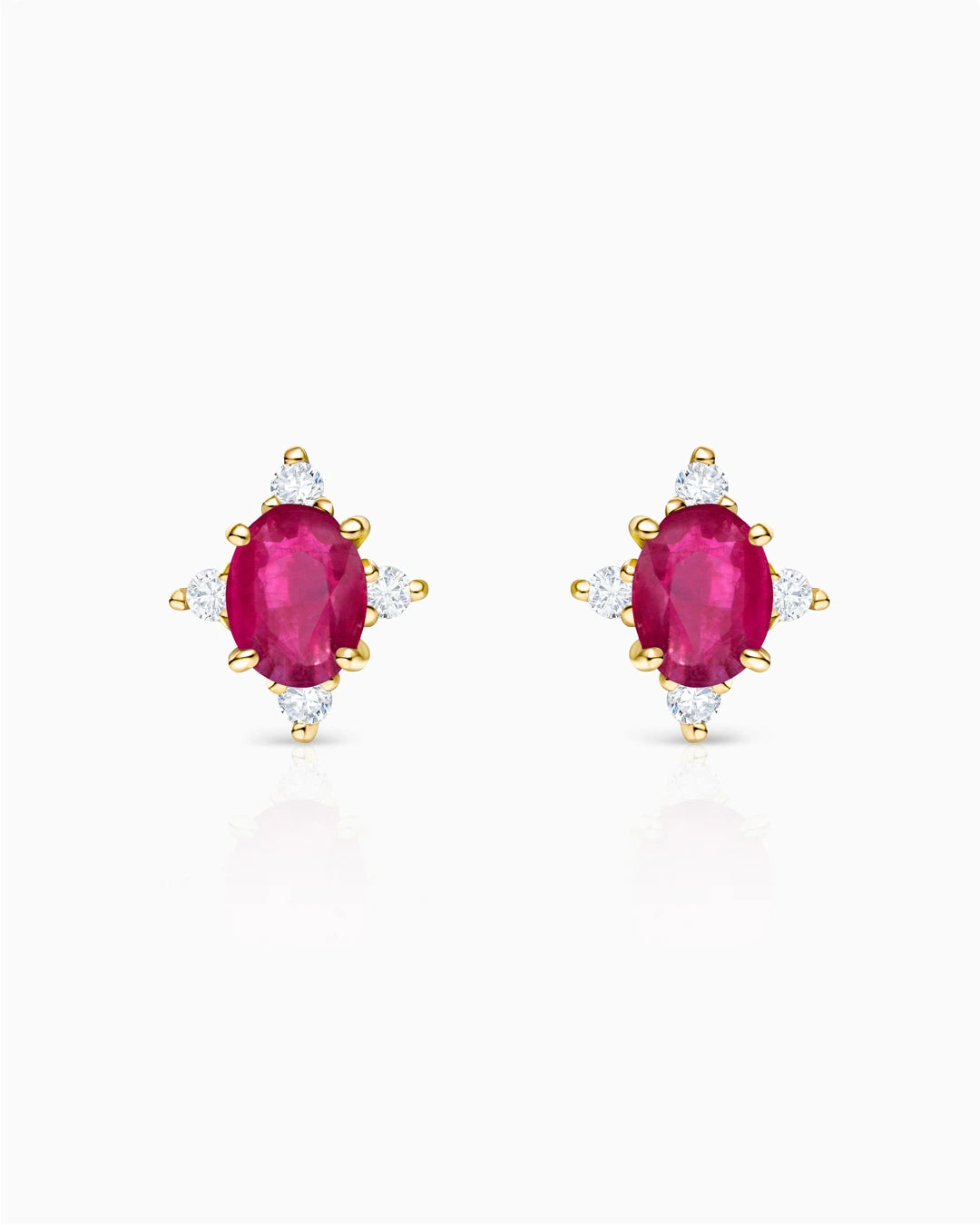 Pendientes Crown Oval de Rubí en Oro Amarillo de 18 Kt