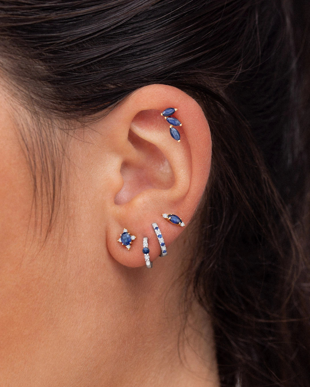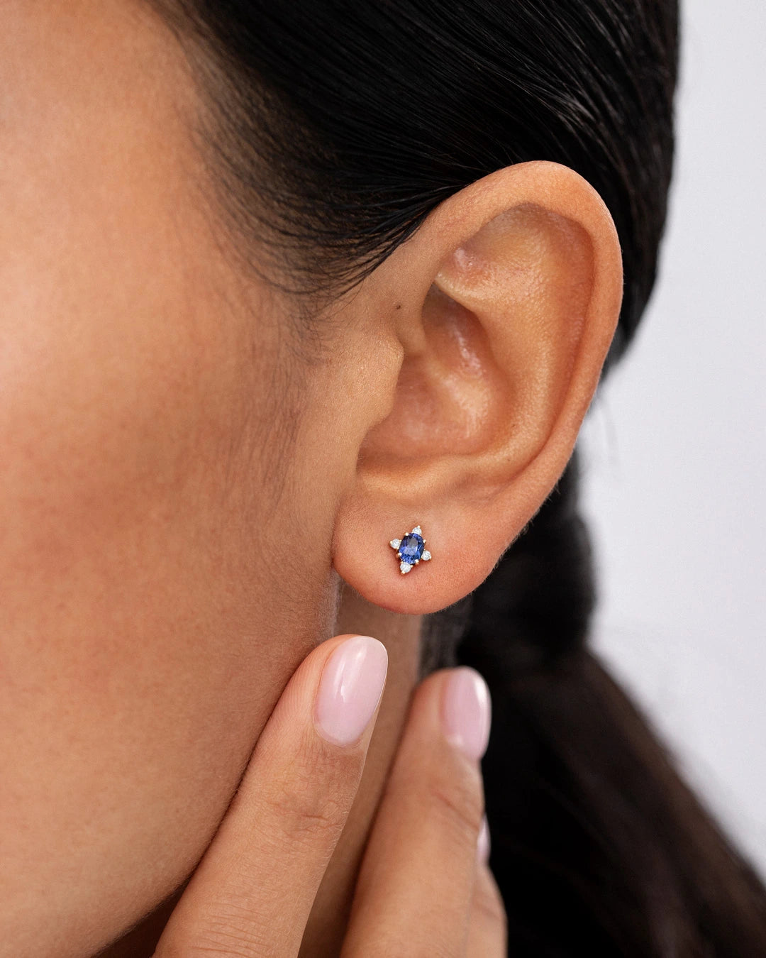 Pendientes Crown Oval de Zafiro en Oro Amarillo de 18 Kt. Inspirados en la historia de la realeza que se mantiene viva a través del brillo de las joyas más preciadas, las coronas y tiaras reales. Las piezas de la colección Crown son una exquisita interpretación minimalista de las imponentes gemas que daban vida a las joyas de La Corona. Una joya llena de color y brillo, los originales pendientes Crown Oval son la perfecta fusión entre elegancia y modernidad en una joya cuyo protagonista es un zafiro de talla oval custodiado por cuatro diamantes en talla brillante. Cada pendiente de la colección Crown ha sido diseñado teniendo en cuenta los ángulos de la oreja y su posición, haciendo de cada pieza una joya ideal para lóbulo, hélix, cartílago o tragus. Crown, una colección cargada de elegancia moderna que representa pasado y presente a través de su brillo.Los pendientes Crown están disponibles en oro amarillo de 18 Kt y en varias versiones, con gema central en talla marquesa u oval y con rubí, esmeralda o zafiro.
