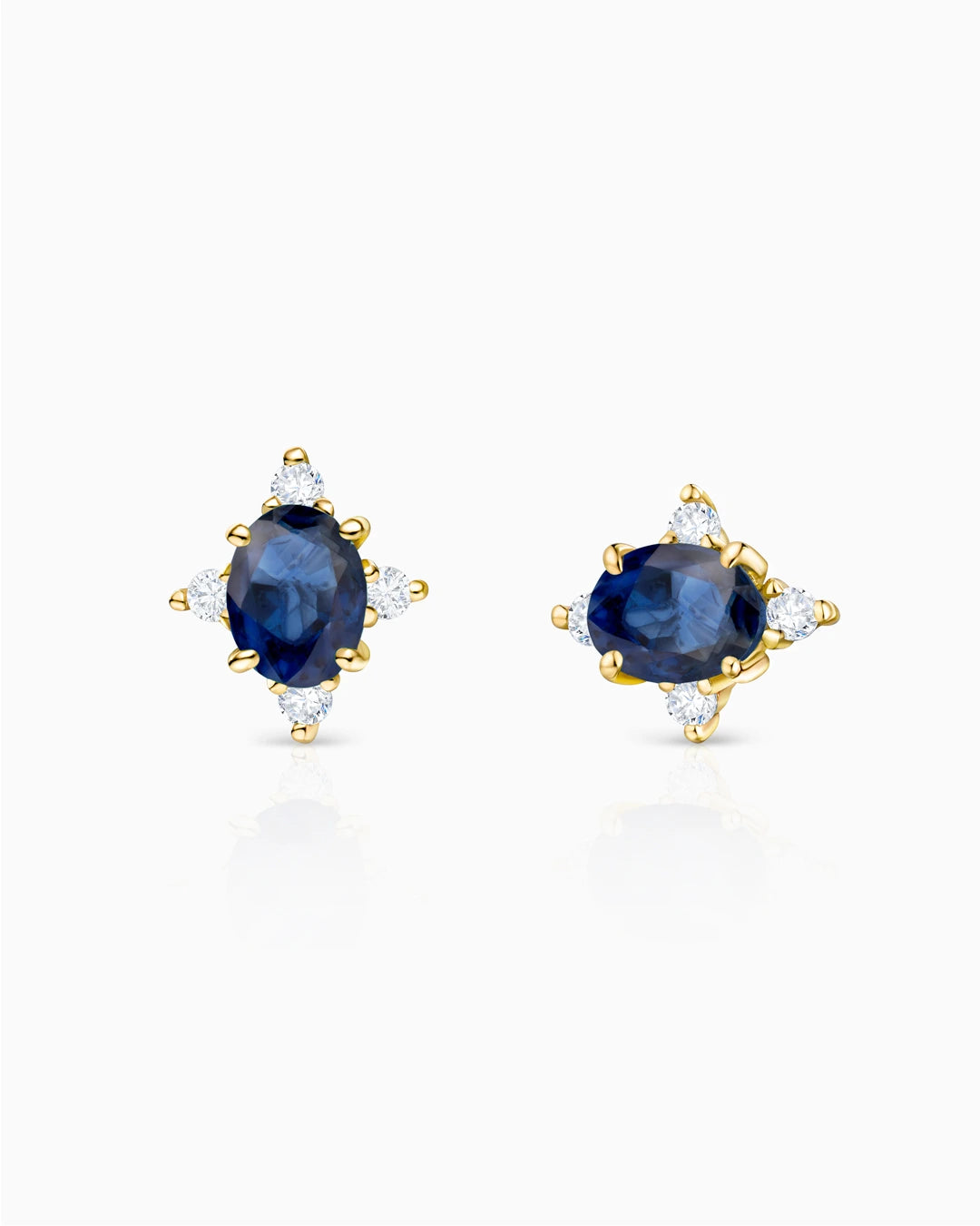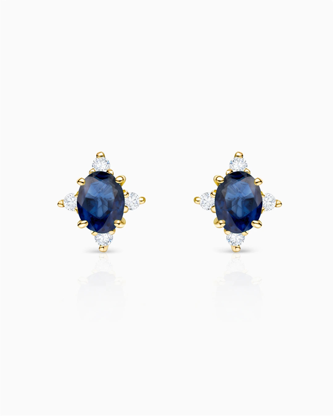 Pendientes Crown Oval de Zafiro en Oro Amarillo de 18 Kt