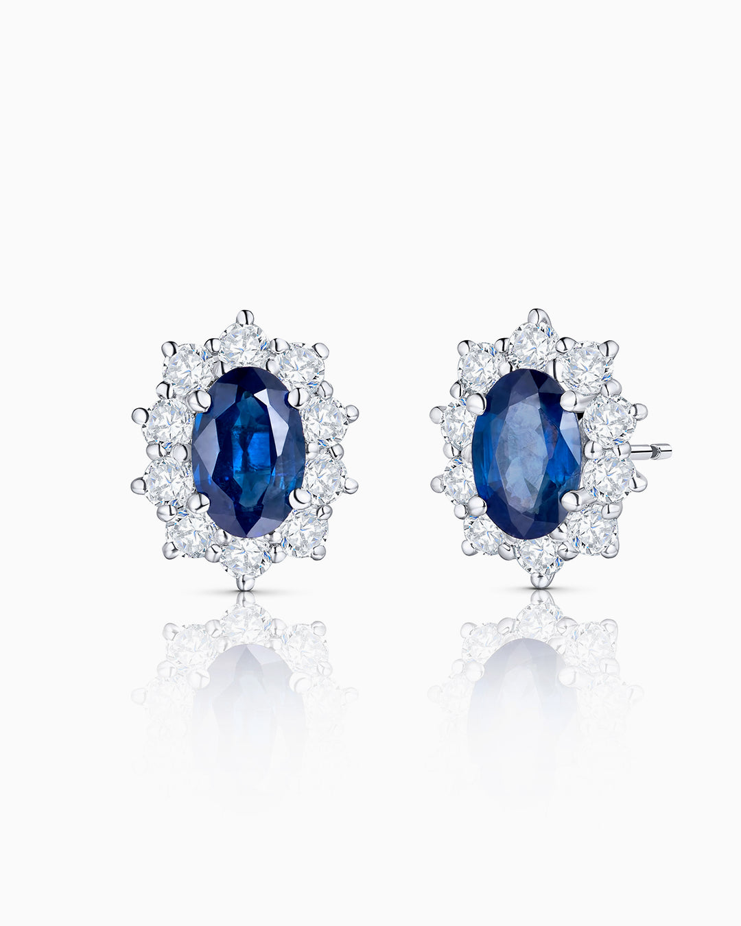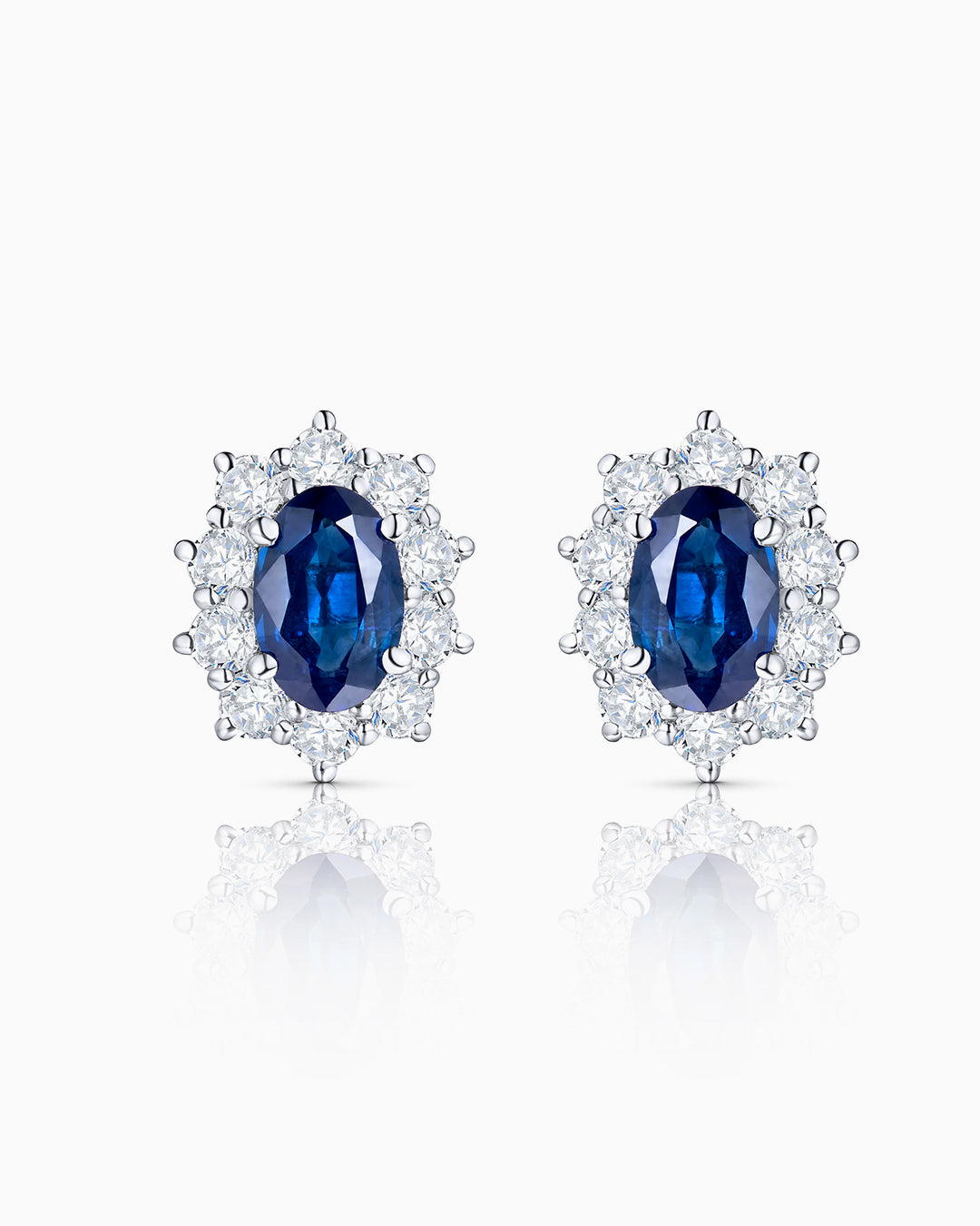 Pendientes Irem de zafiros ovales centrales y orla de diamantes sobre montura de oro blanco de 18...