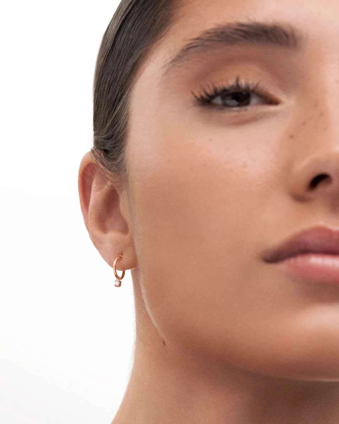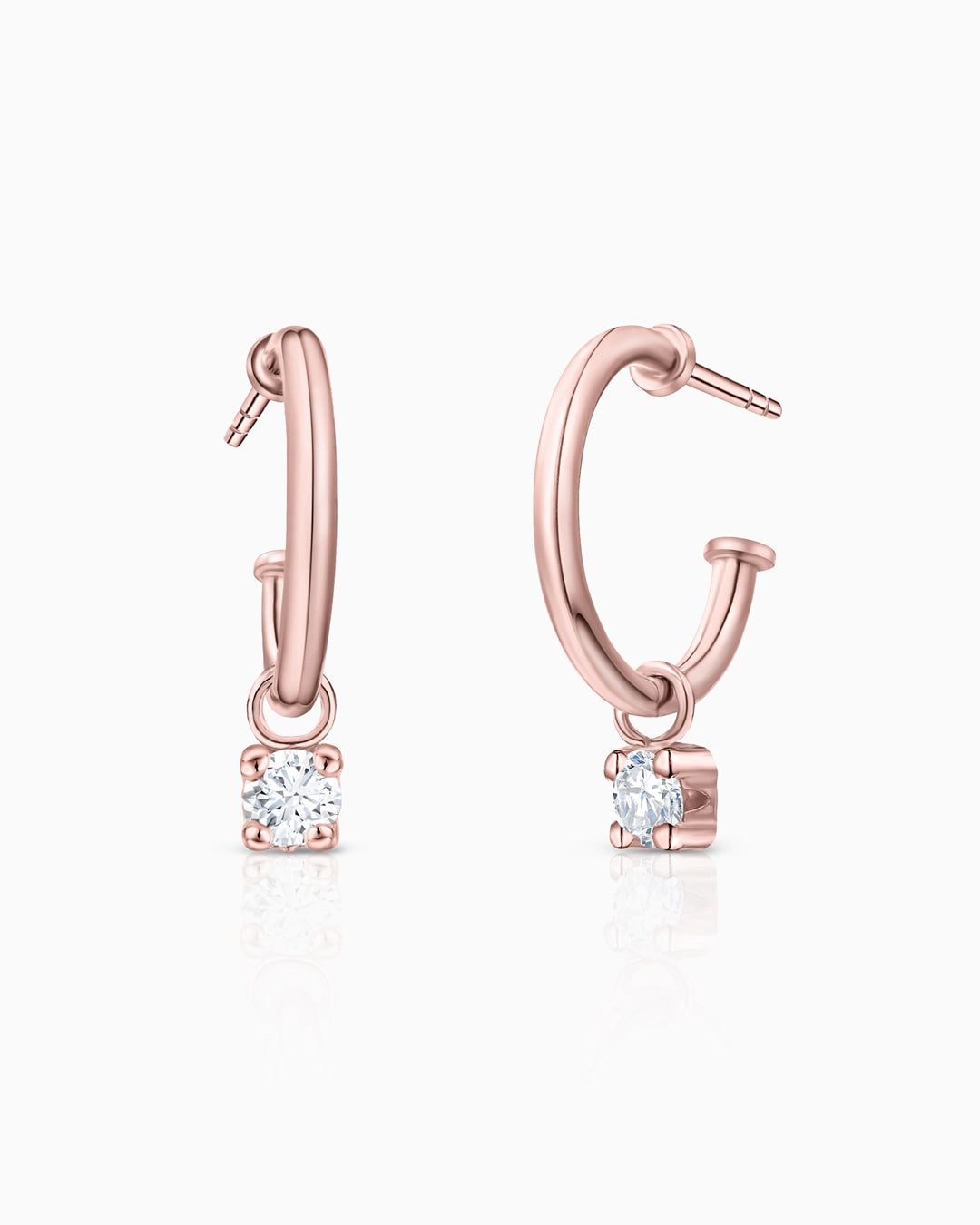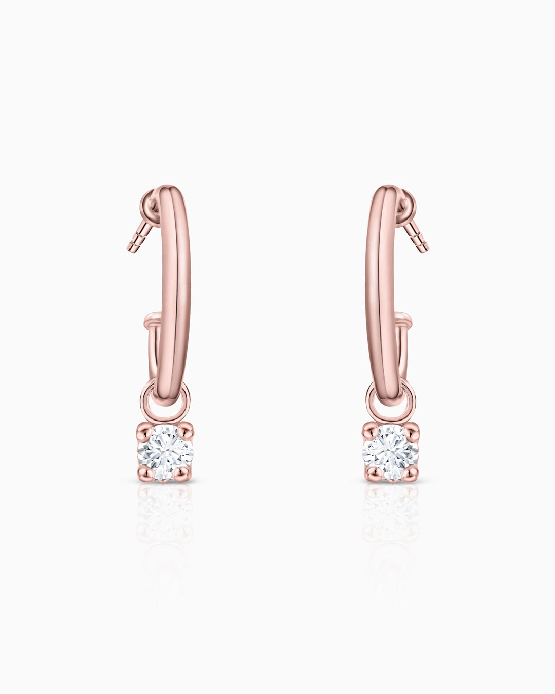 Pendientes de medio aro Dot Diamonds con charm de diamante en oro rosa de 18 Kt. Diseñados en tre...