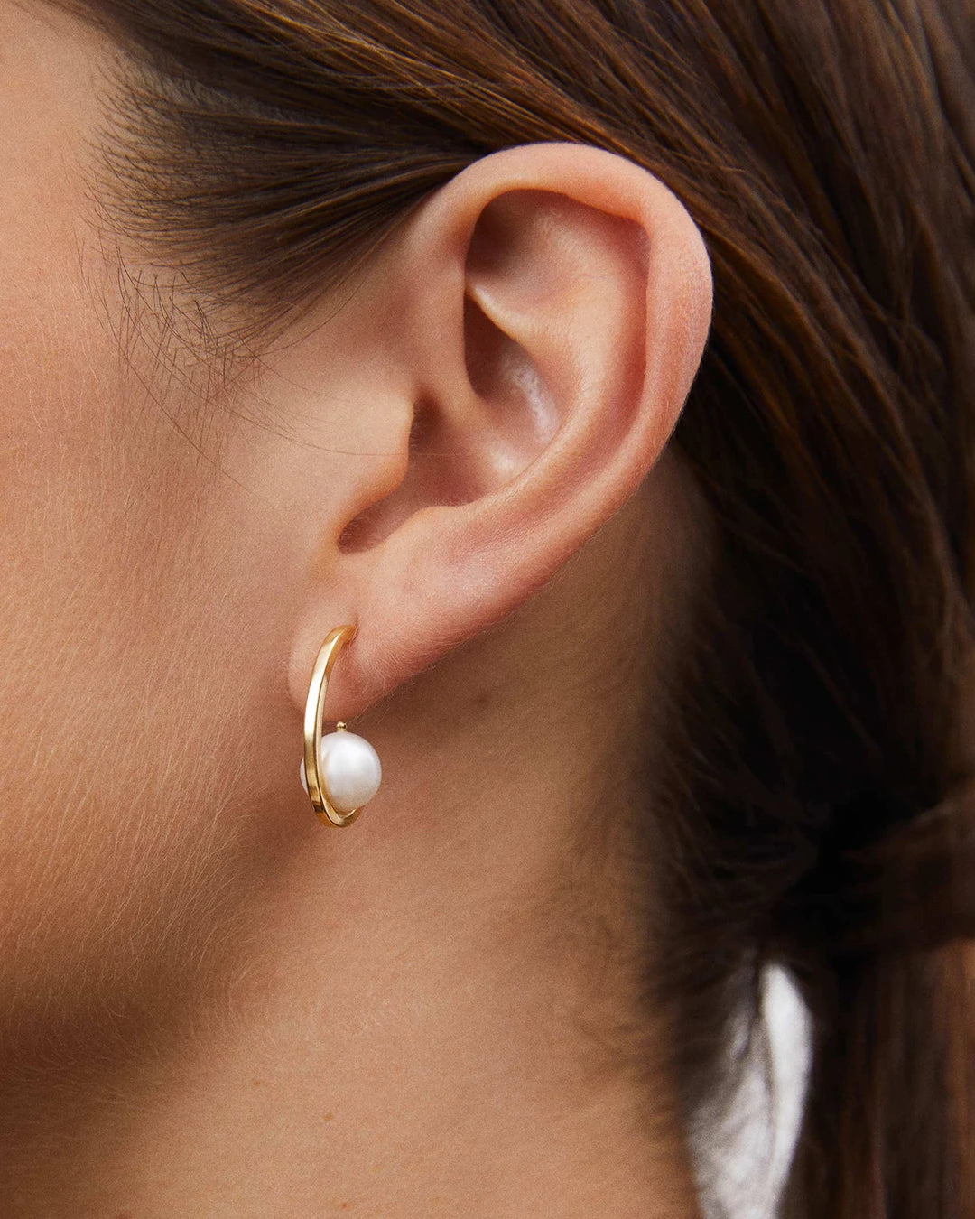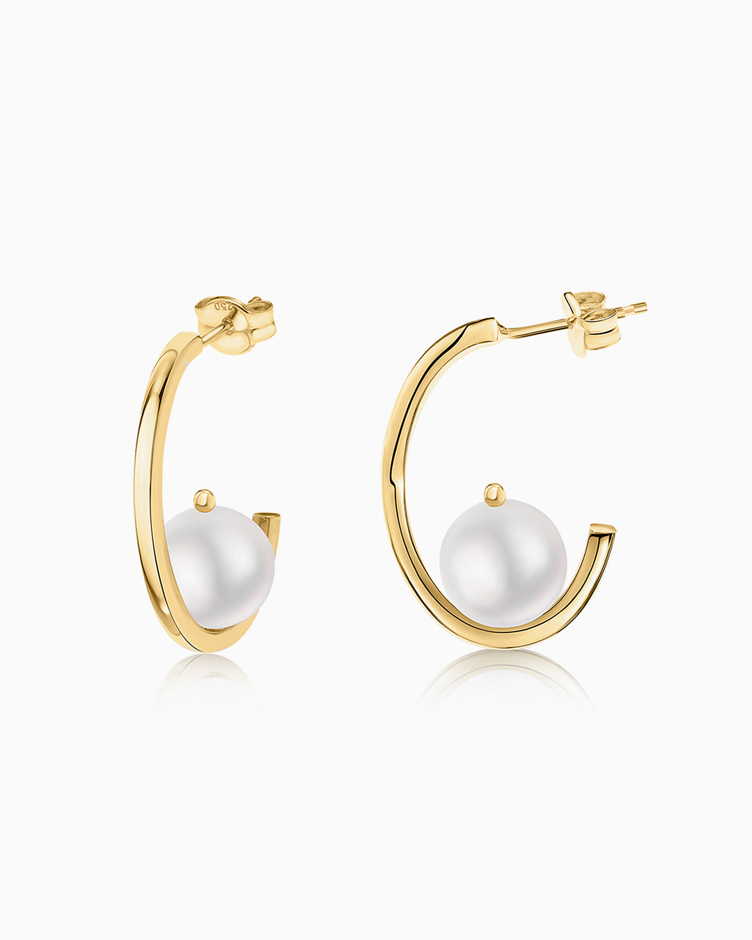 Los originales pendientes Mabi Blet Medio Aro de perlas naturales en oro amarillo de 18 Kt son to...