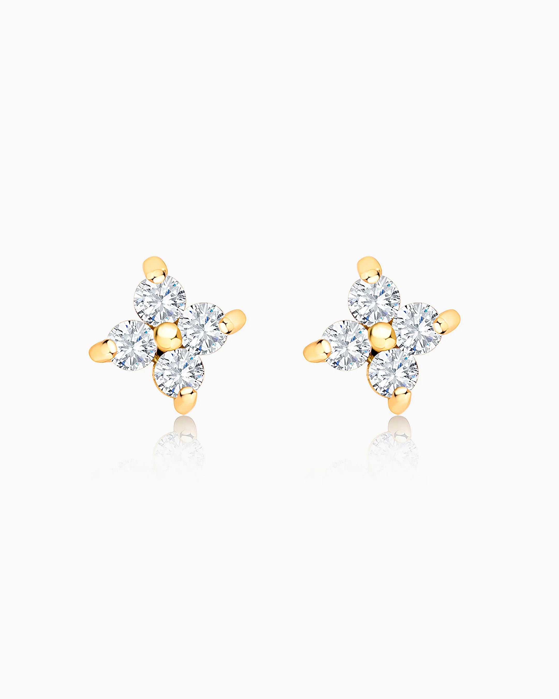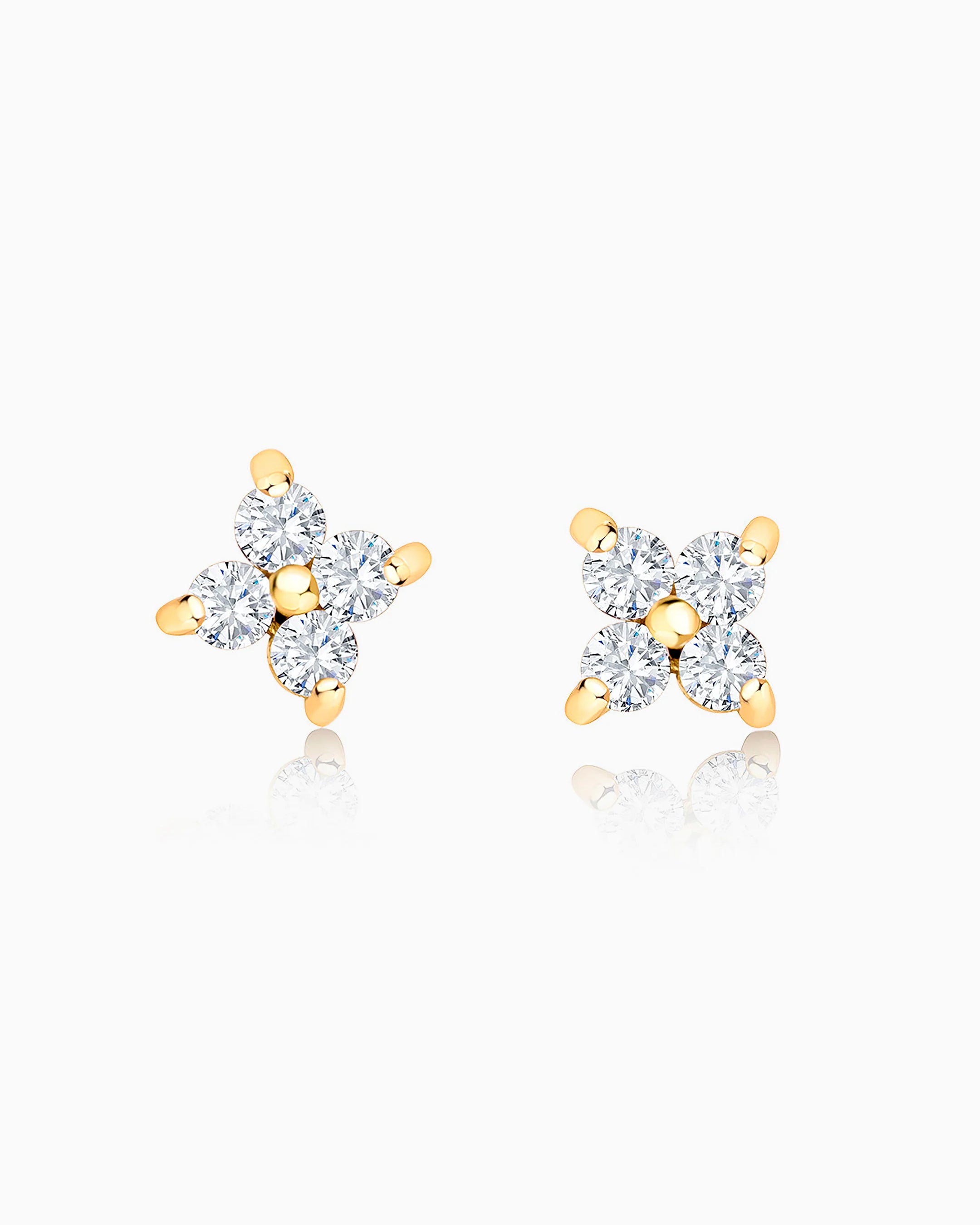 Pendientes Petite Diamonds Cross en Oro Amarillo de 18 Kt