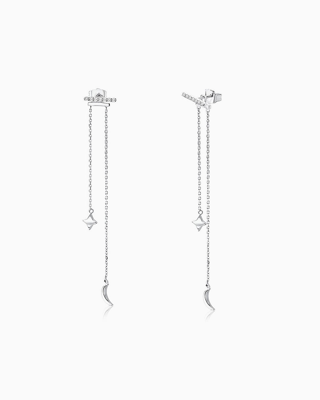 Pendientes Petite Diamonds Luna y Estrella en Oro Blanco 18 Kt