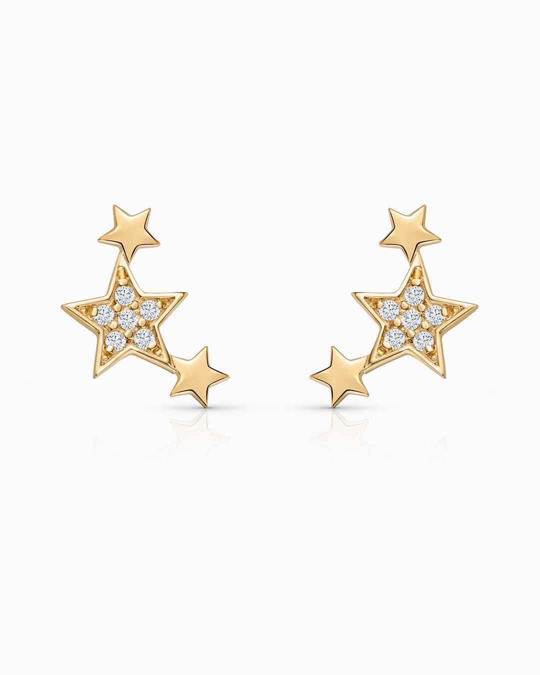 Pendientes Trepadores Estrellas Moon Diamonds en Oro Amarillo de 18 Kt