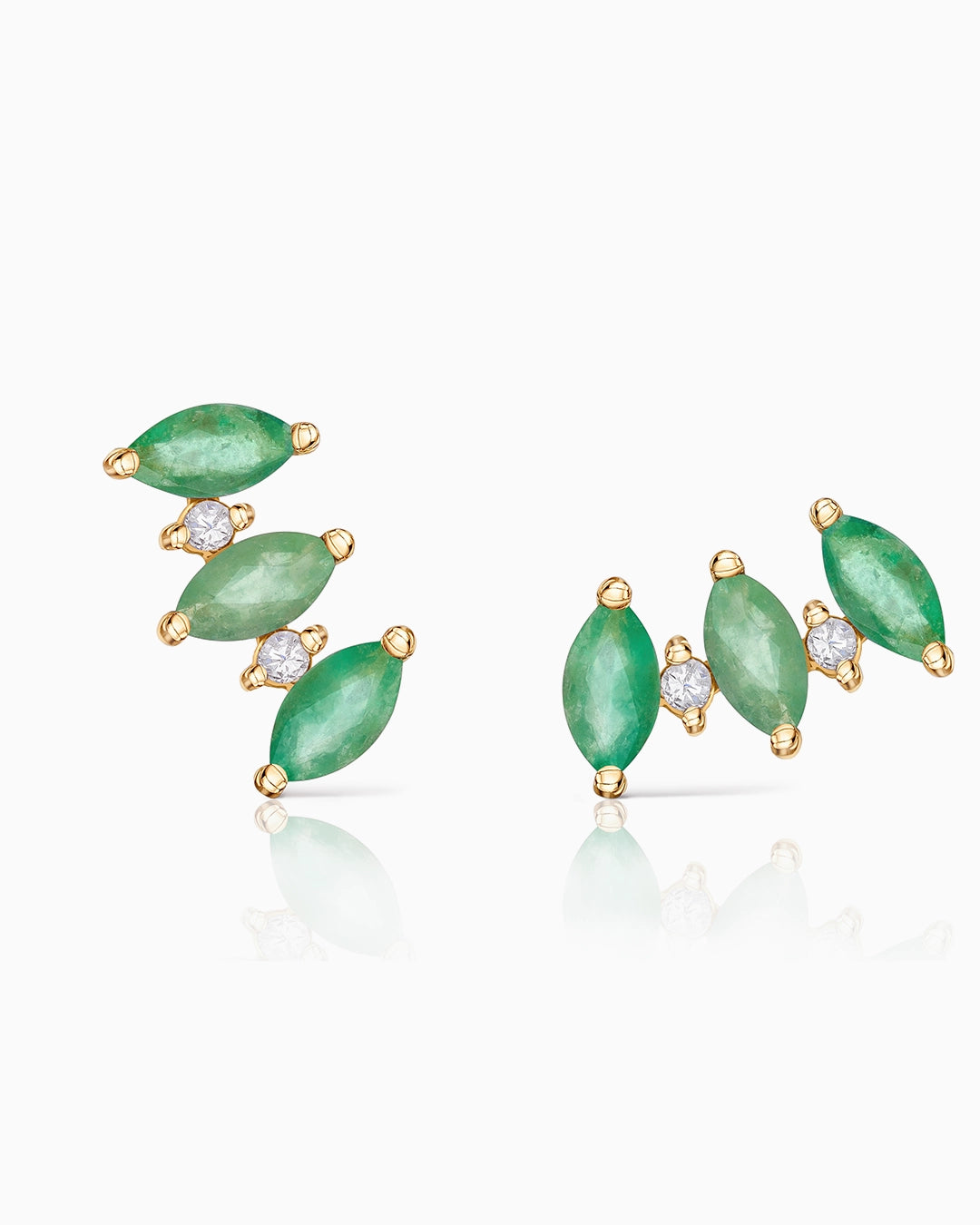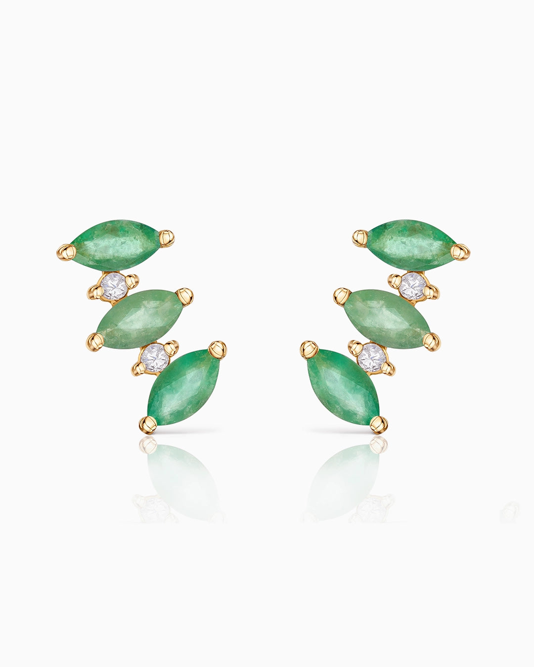 - Pendientes Trepadores Tri-Marquise diamante y esmeralda