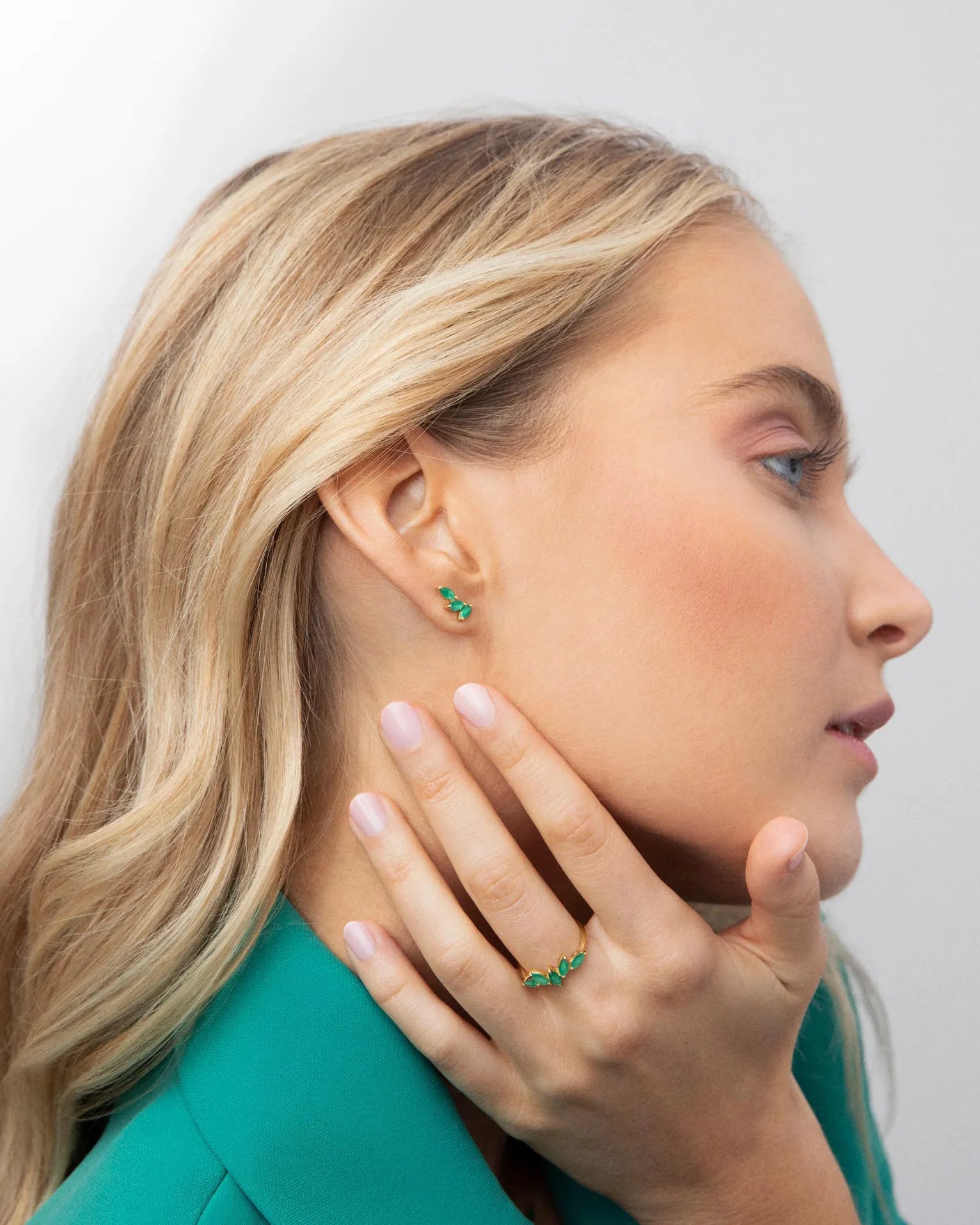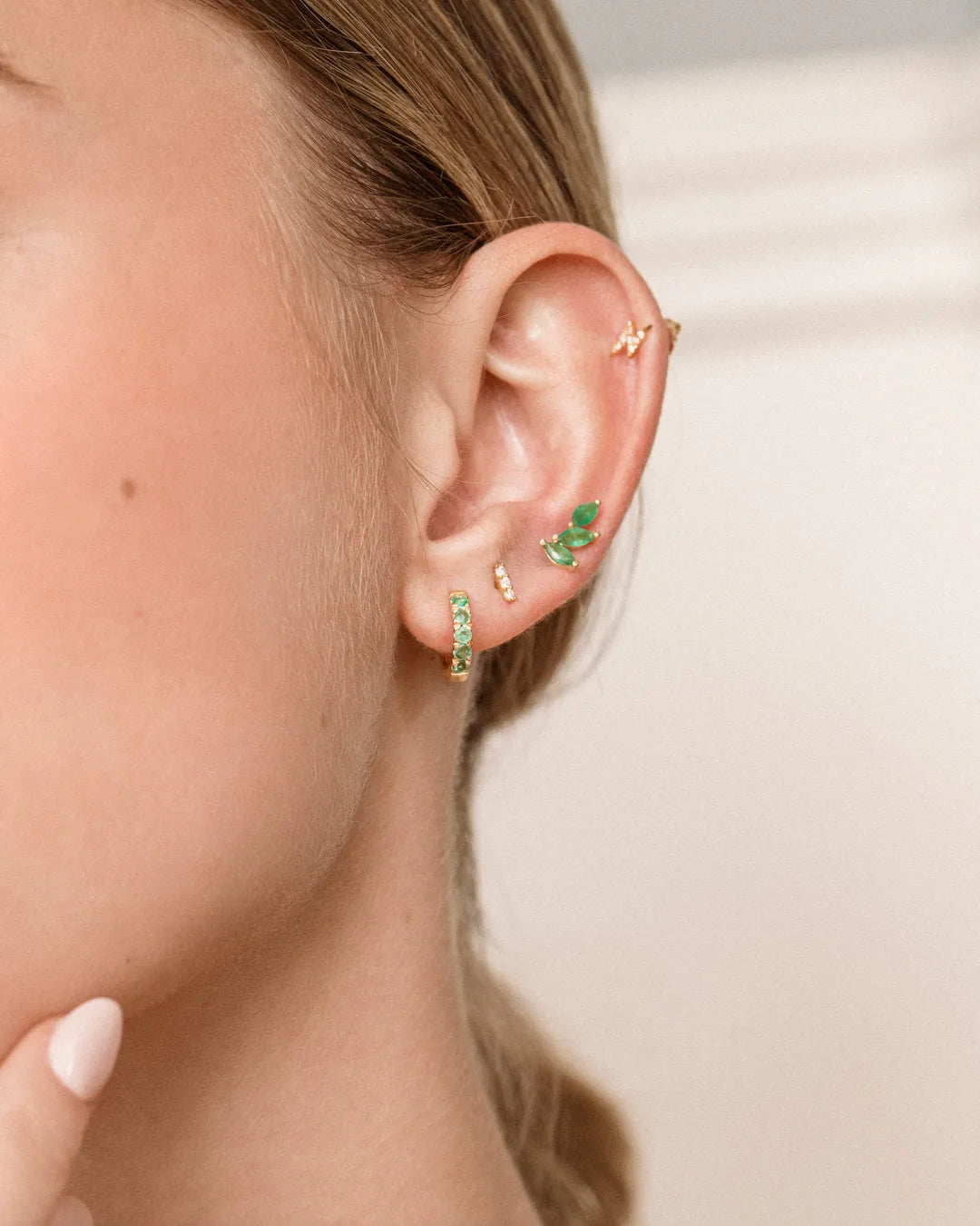- Pendientes trepadores Tri-Marquise esmeralda