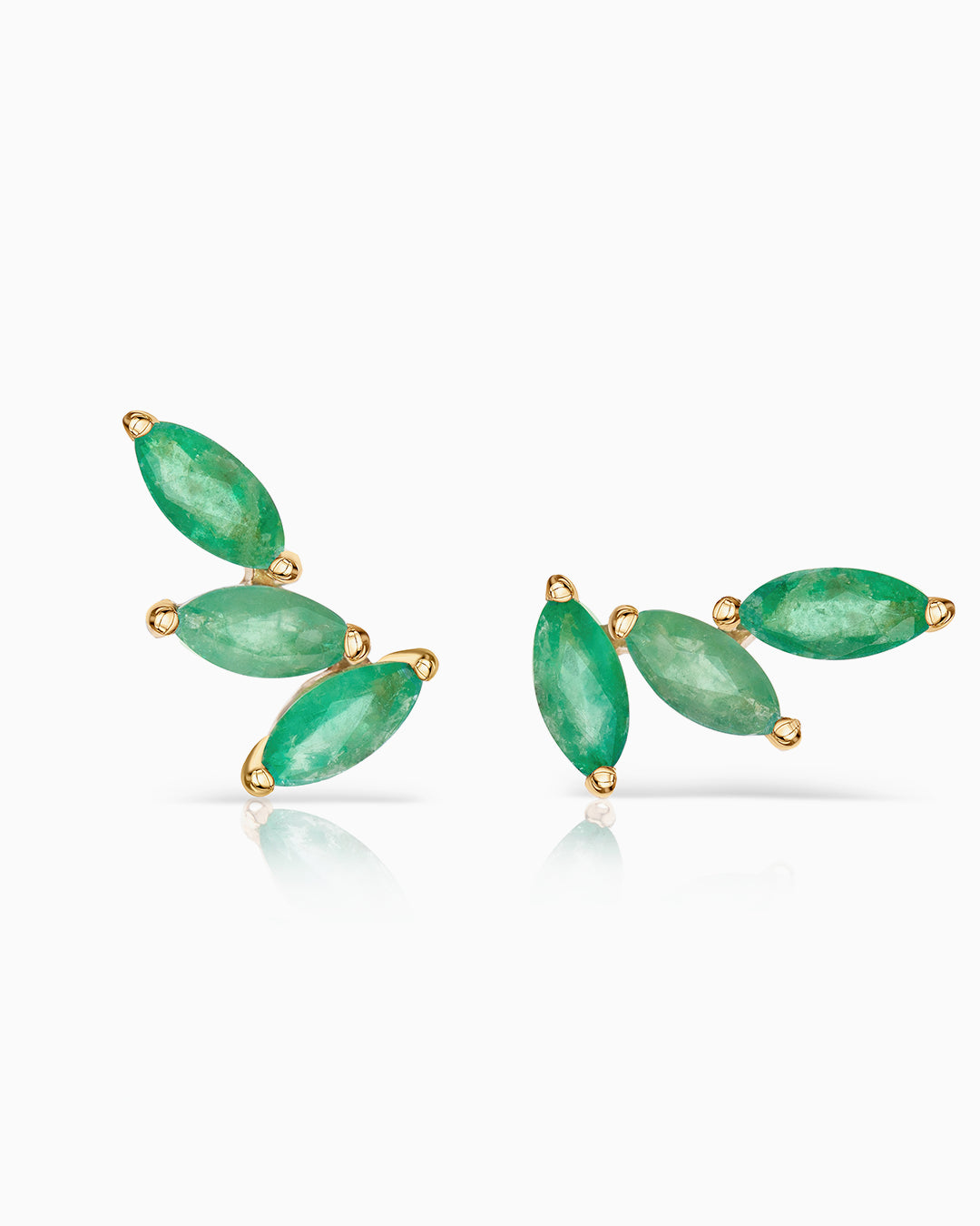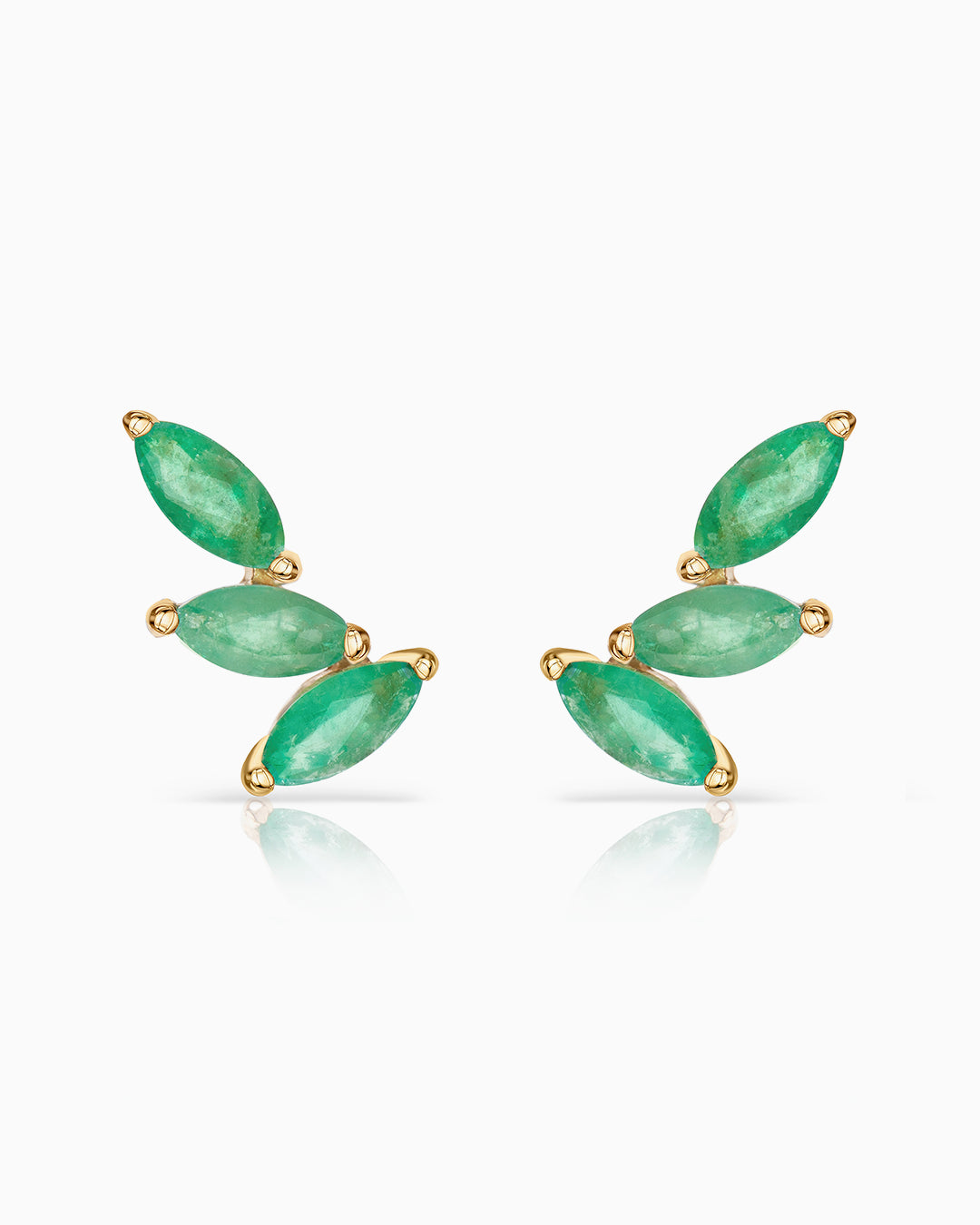 Pendientes Trepadores Tri-Marquise Esmeralda en Oro Amarillo de 18 Kt