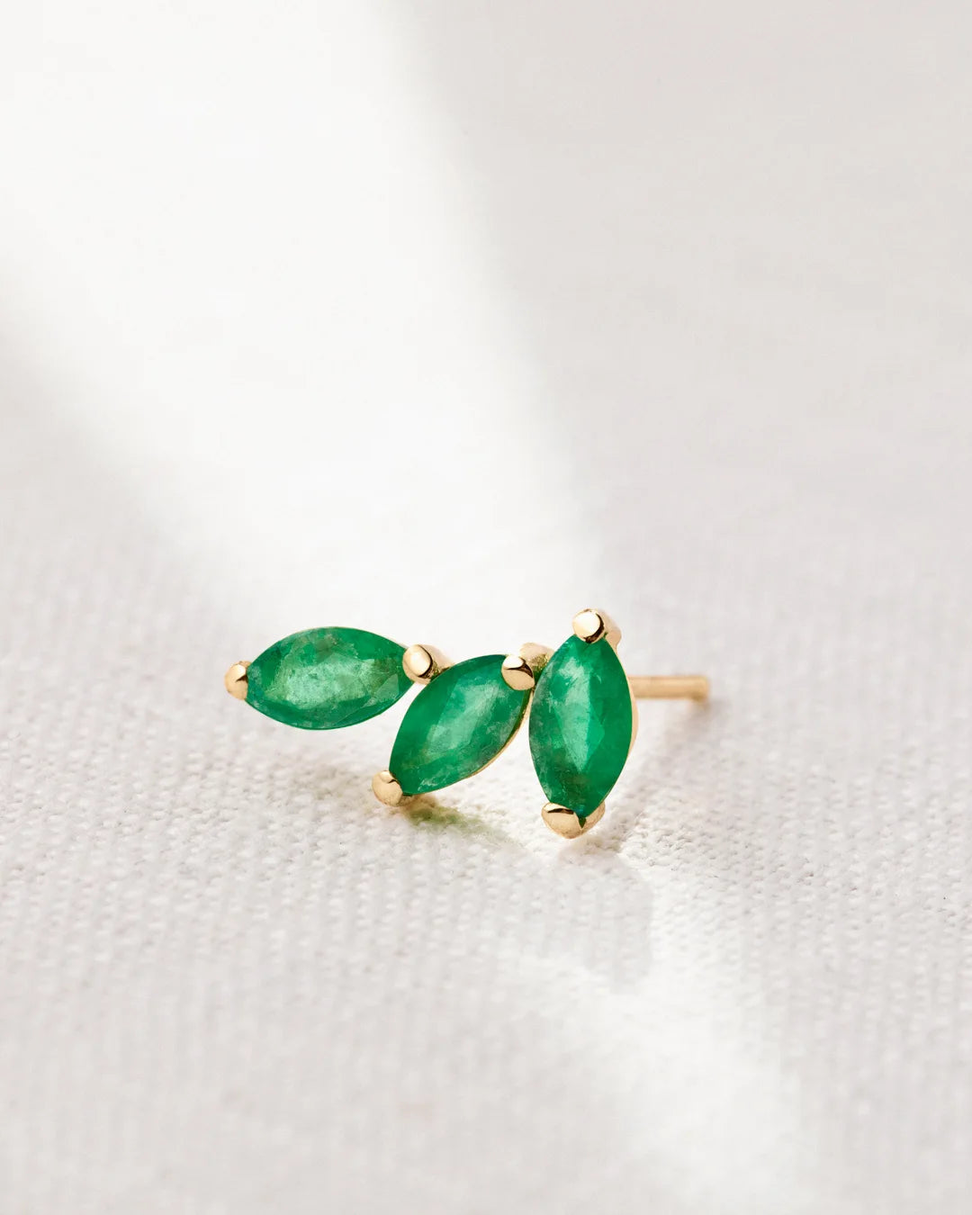 Pendientes trepadores de esmeraldas en talla marquesa montados en oro amarillo de 18 Kt. Inspirados en las formas de la naturaleza y diseñados para hacerte brillar en cualquier ocasión. Este original y versátil pendiente está formado por tres esmeraldas en talla marquesa que se unen trazando la delicada forma del lóbulo. Su característica forma permite que puedan llevarse tanto en lóbulo como en hélix creando sorprendentes looks. Incorporan un cierre de presión o tuerca de mariposa en el centro del pendiente contribuyendo a su comodidad y ajuste.Los pendientes trepadores Tri-Marquise están disponibles en tres versiones con esmeralda, rubí o zafiro montados en oro amarillo de 18 Kt.