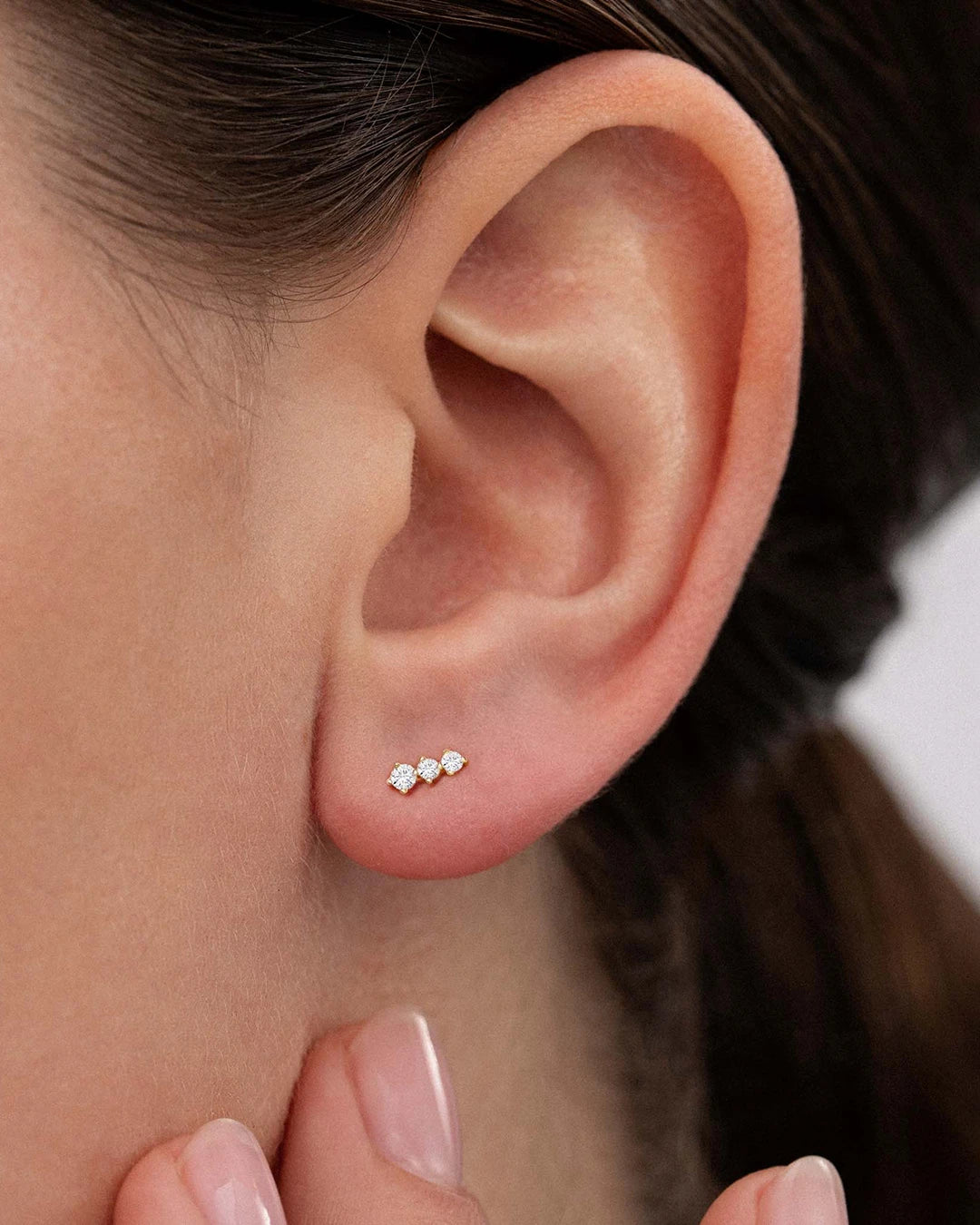 Pendientes Trinity de diamantes montados en oro amarillo de 18 Kt. La belleza de la simplicidad c...