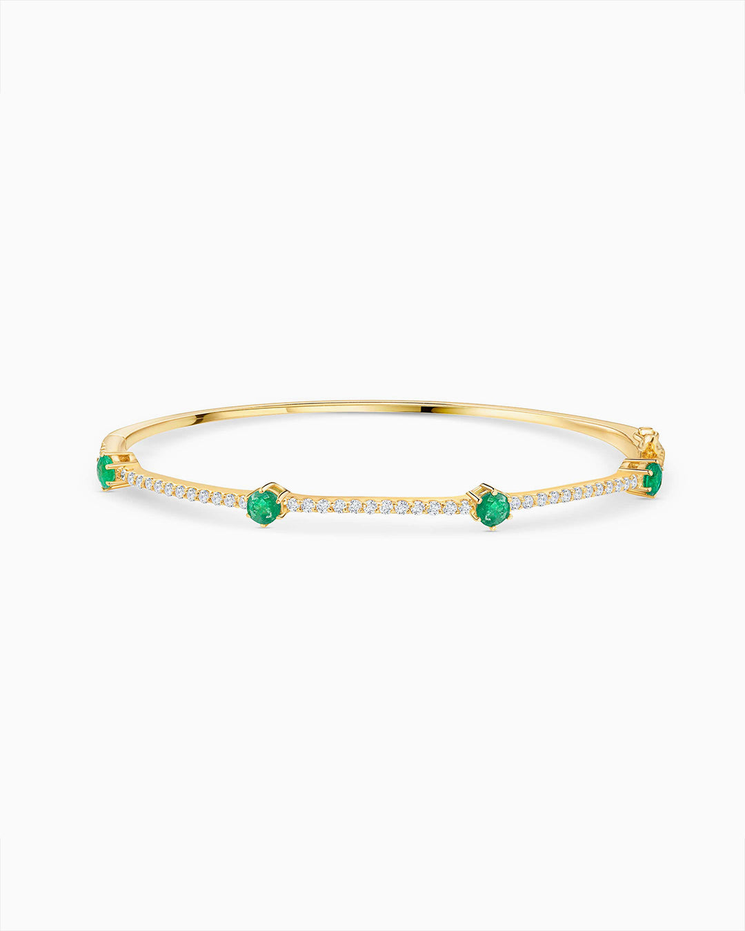 Pulsera Nina de esmeraldas y diamantes en oro amarillo de 18 Kt. Nina es una pequeña gran revolución, una delicada obra de arte inspirada en una joya icono en su versión más actual. Esta pulsera fusiona a la perfección el espíritu audaz que caracteriza cada diseño Mumit con el más exquisito saber hacer. Cuenta con esmeraldas y diamantes naturales minuciosamente seleccionados para elevar su belleza, creando así un juego de luz y color sublime. Una pequeña revolución perfecta para su día a día. La Pulsera Nina está disponible en tres versiones, en oro amarillo, blanco y rosa de 18 Kt con diamantes, esmeraldas, zafiros y rubíes.