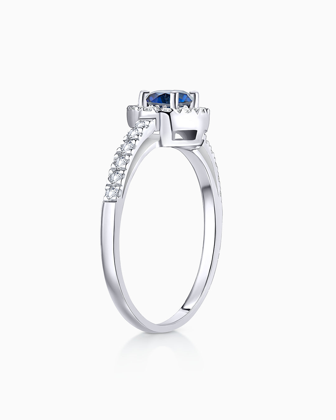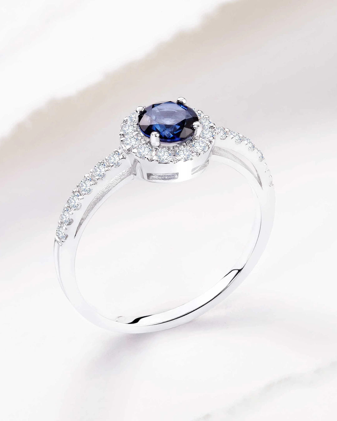 Sortija Anette de Zafiro y Diamantes en Oro Blanco de 18 Kt
