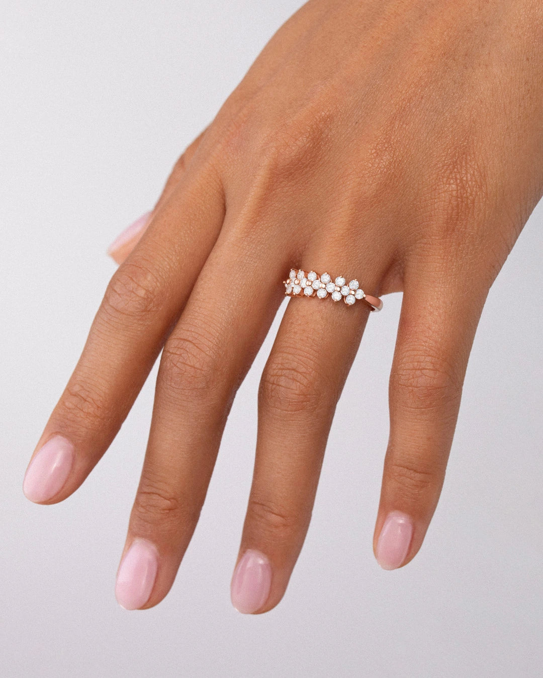 Sortija Cross de diamantes engastados en oro rosa de 18 Kt. Inspirados en una de las formas más i...