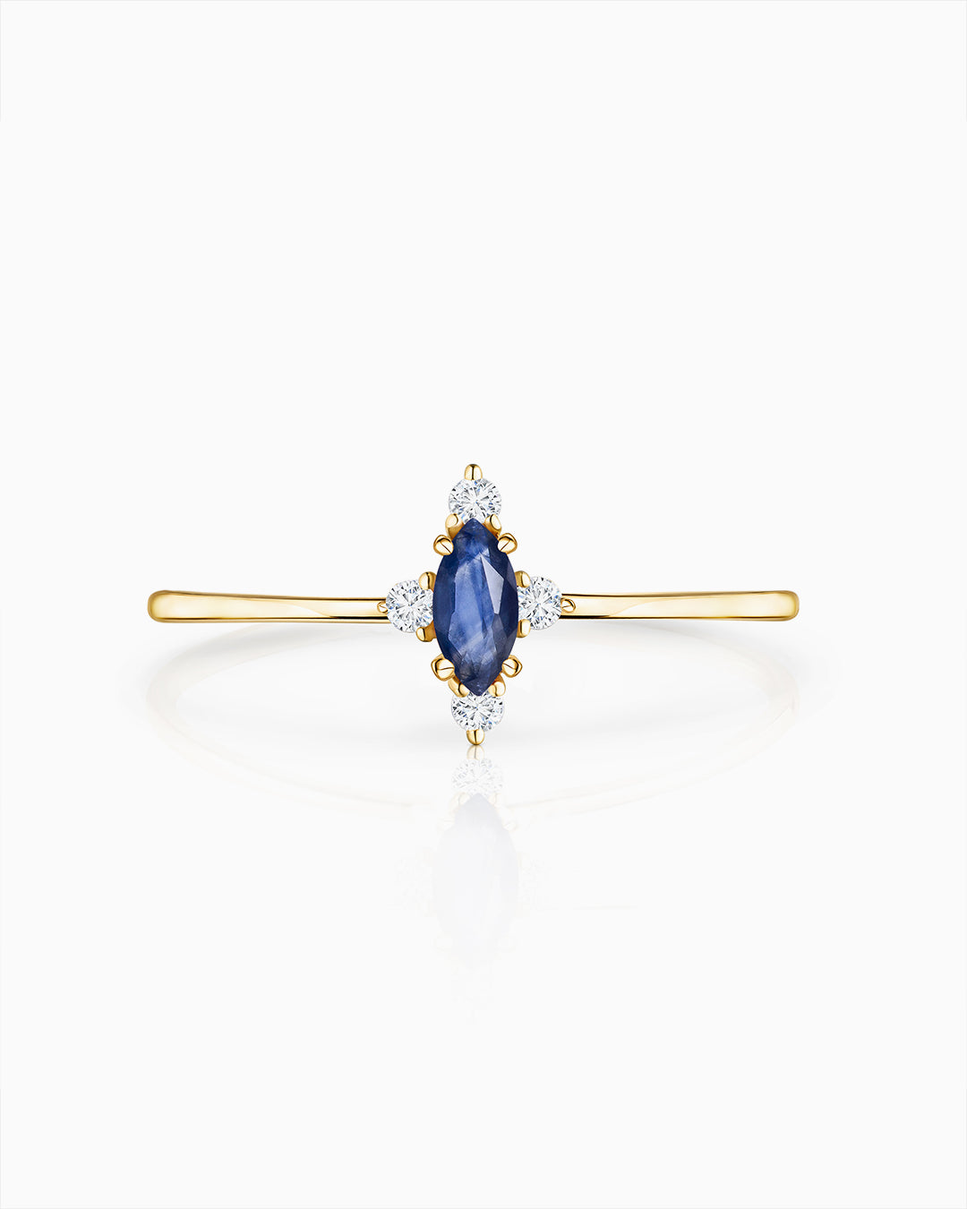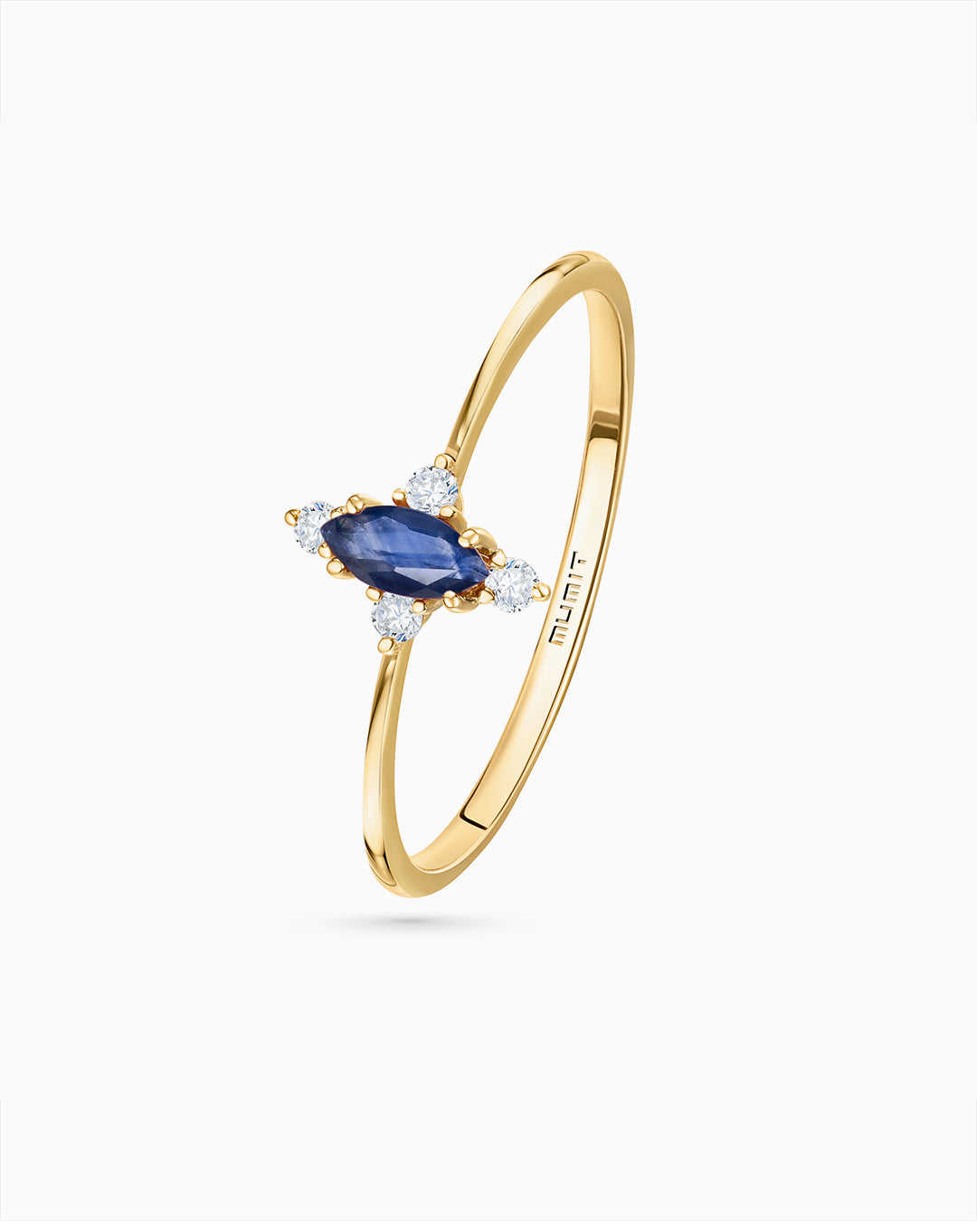Sortija Crown Marquise de Zafiro en Oro Amarillo de 18 Kt