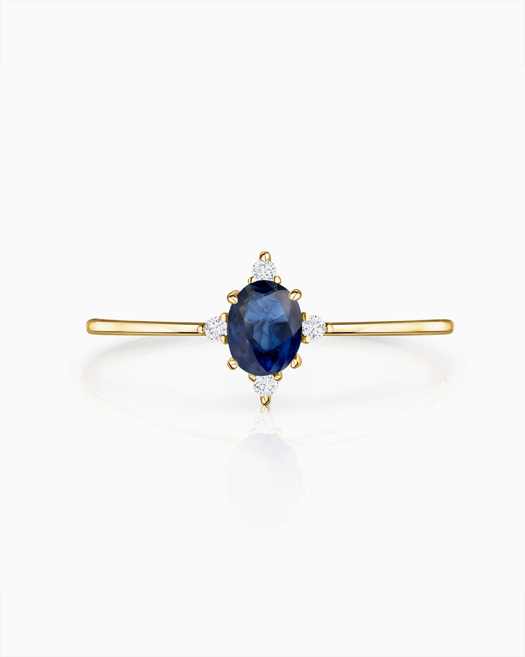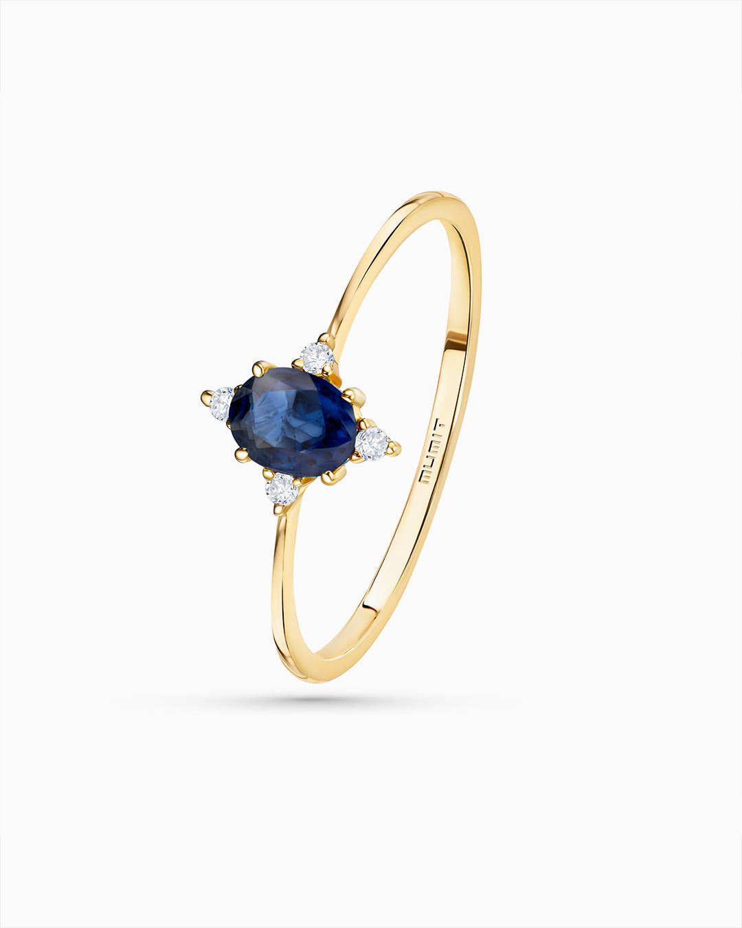 Sortija Crown Oval de Zafiro en Oro Amarillo de 18 Kt. Inspirada en la historia de la realeza que se mantiene viva a través del brillo de las joyas más preciadas, las coronas y tiaras reales. Las piezas de la colección Crown son una exquisita interpretación minimalista de las imponentes gemas que daban vida a las joyas de La Corona. Una joya llena de color y brillo, la original sortija Crown Oval es la perfecta fusión entre elegancia y modernidad en una joya cuyo protagonista es un magnético zafiro en talla oval custodiado por cuatro diamantes en talla brillante. Una colección cargada de elegancia moderna que representa pasado y presente a través de su brillo. Las sortijas Crown están disponibles en oro amarillo de 18 Kt y en varias versiones, con gema central en talla marquesa u oval y con rubí, esmeralda o zafiro.