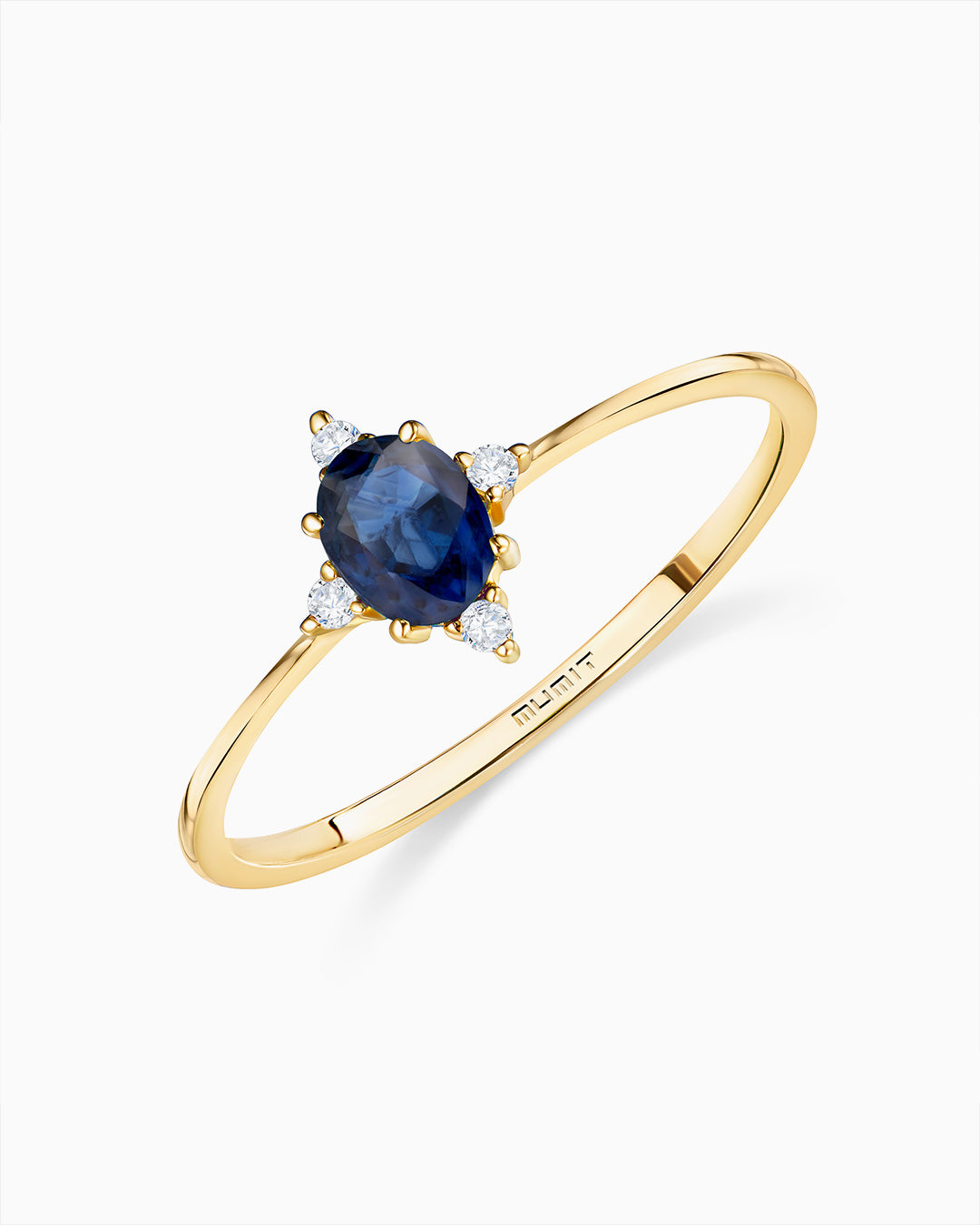 Sortija Crown Oval de Zafiro en Oro Amarillo de 18 Kt