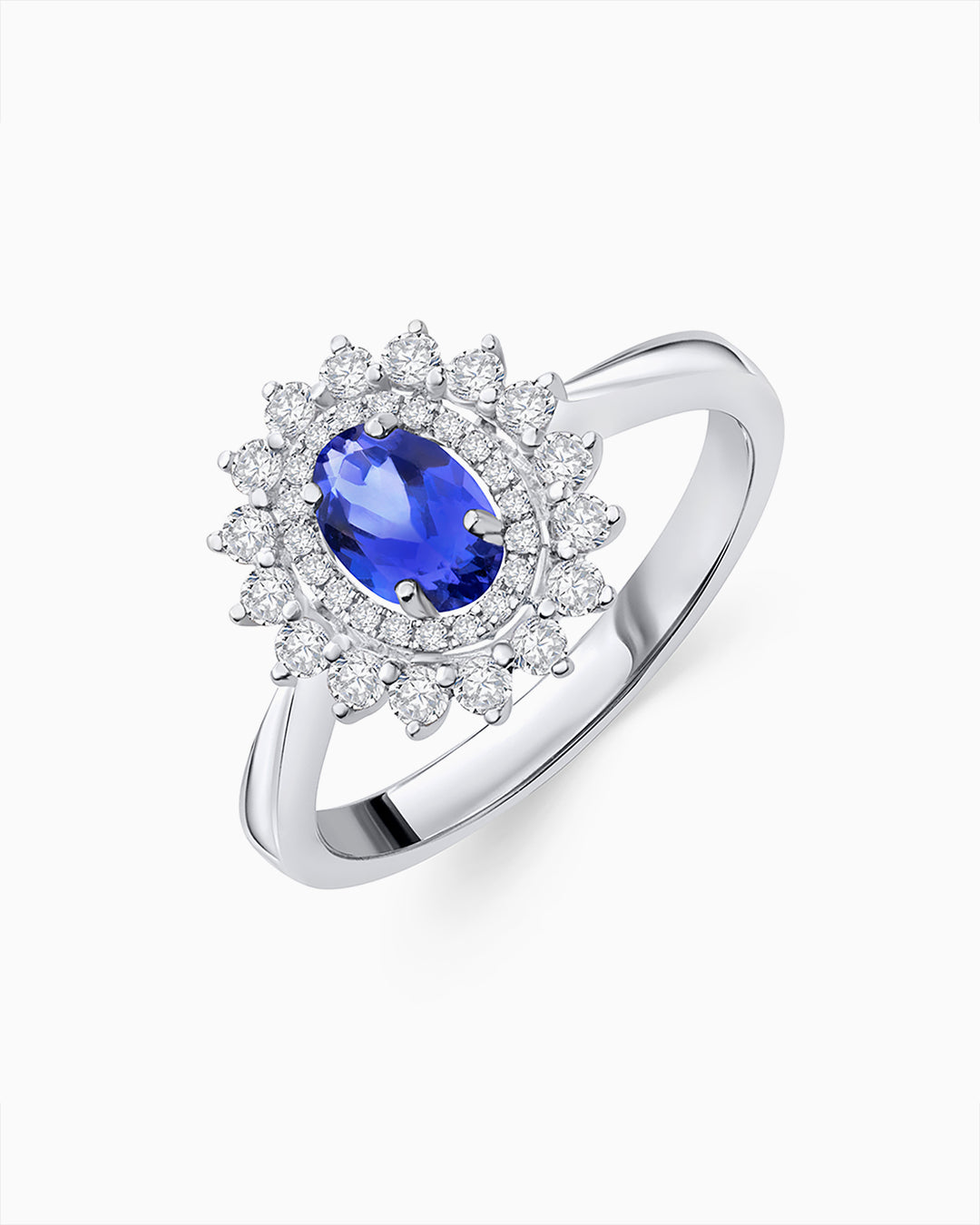 Sortija Gala de Zafiro y Diamantes en Oro Blanco de 18 Kt
