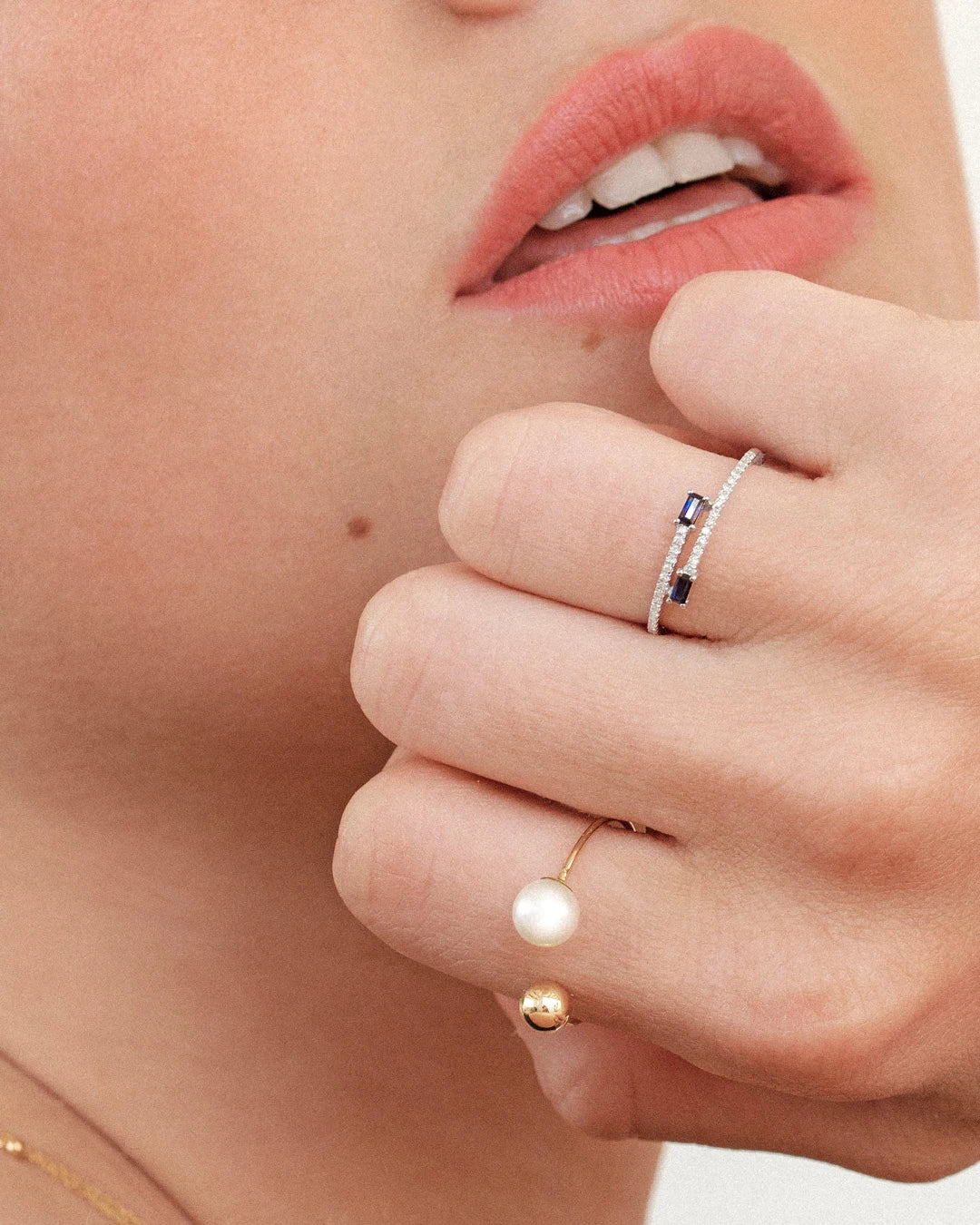 Inspirada en la limpieza y el minimalismo de las formas geométricas, nuestra sortija Mabi Blet Doble en oro amarillo de 18 Kt con perla natural te enamorará. Una sortija con un diseño original y único, un básico reinventado que no puede faltar en tu joyero. Ideal para combinar con la pulsera Mabi Blet para conseguir un look de perlas contemporáneo, elegante y minimalista.